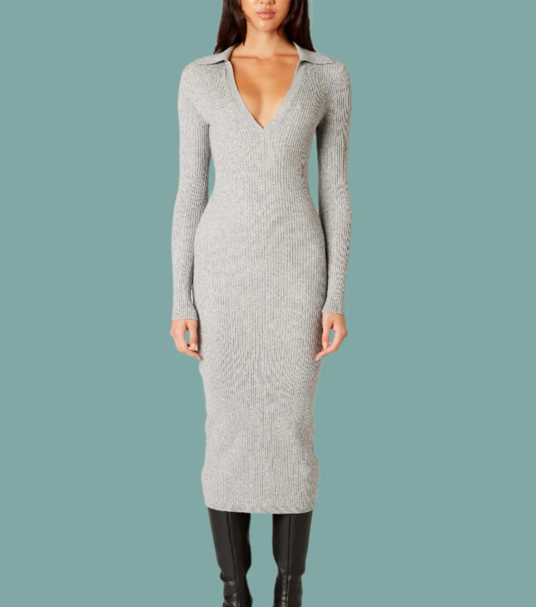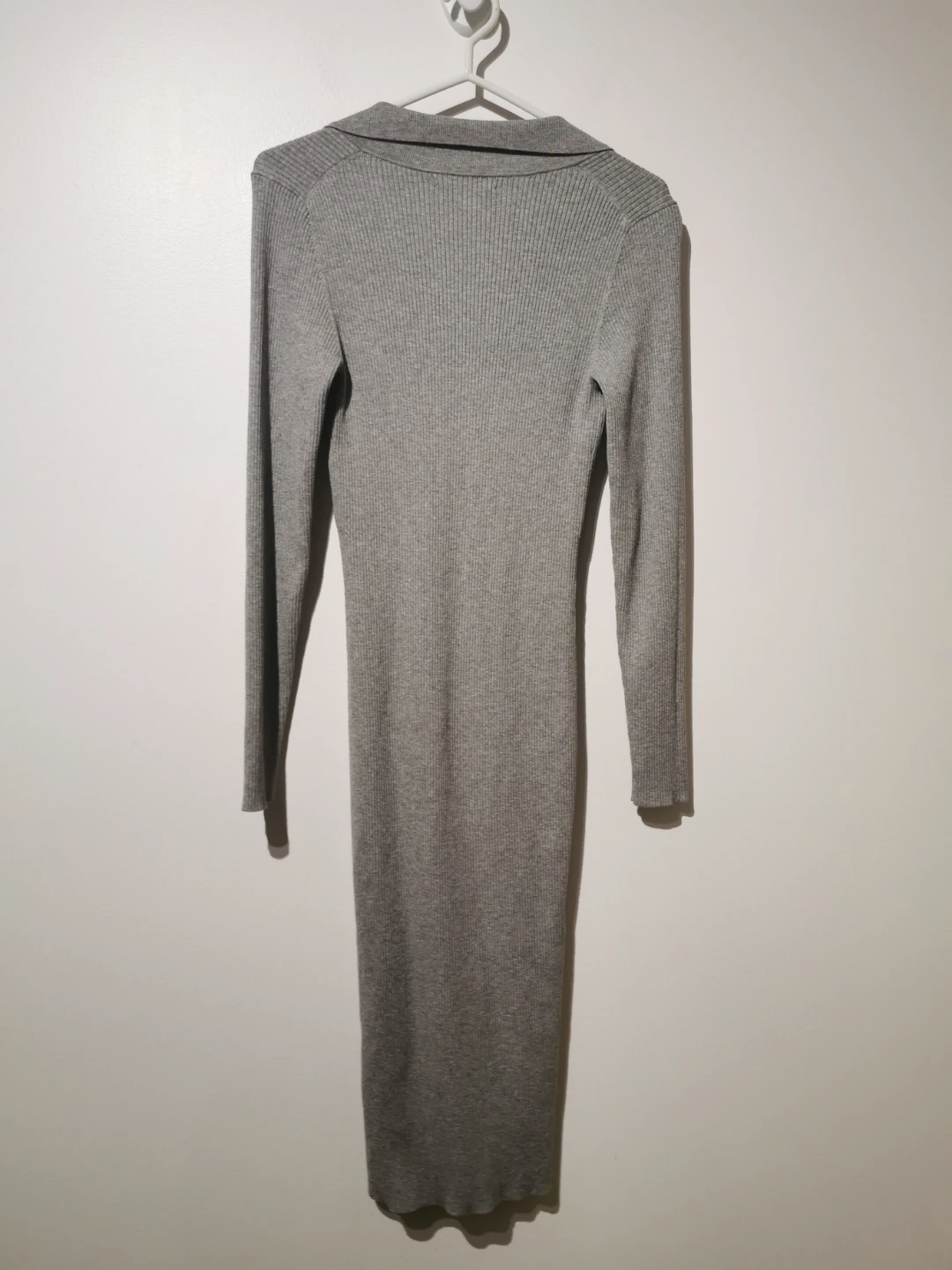 Selling a Babaton ribbed knit midi dress in a lovely grey colour Perfect for a casual or dressed-up look. Feel free to message me with any questions!