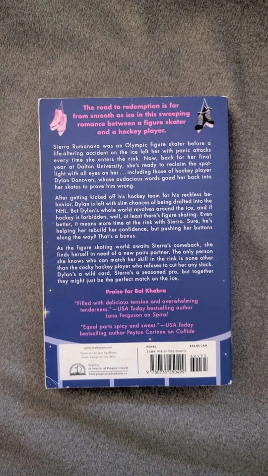 Engaging read, this is Revolve by Bal Khabra. It's part of the Off the Ice Series. A romance novel about figure skating and hockey. Has some minor wear on cover edges. Meet Up: Spadina Subway station. CASH ONLY.