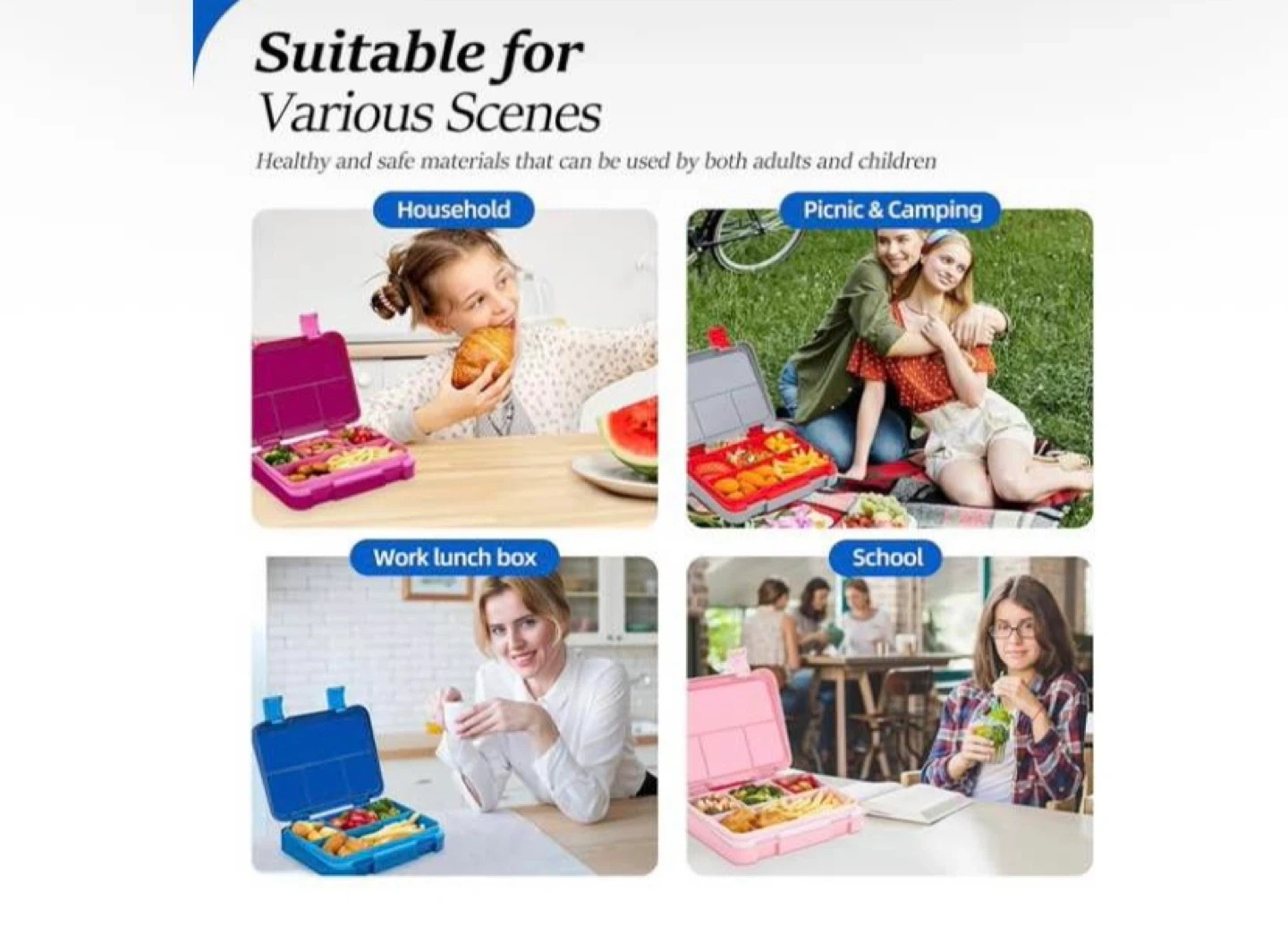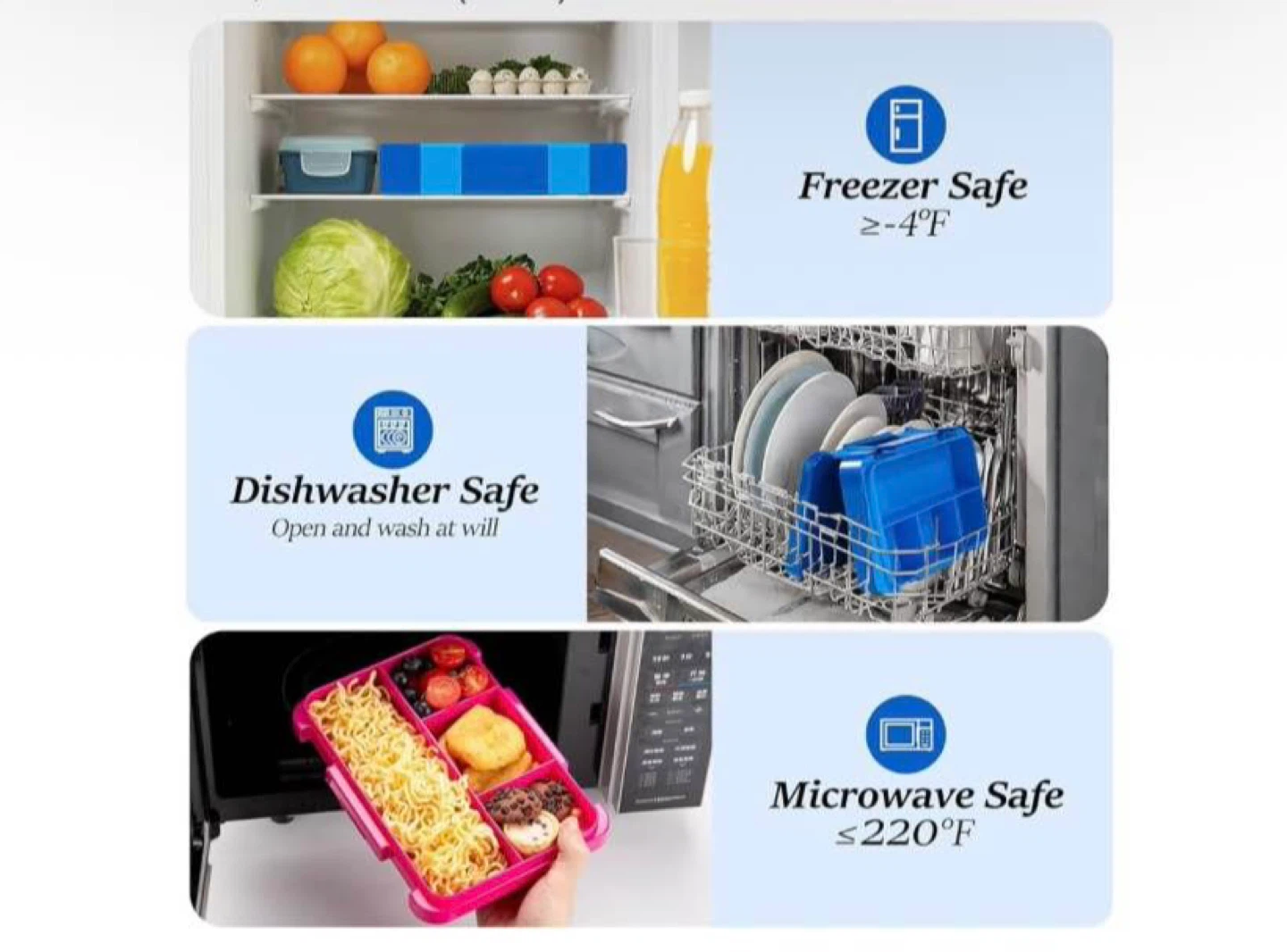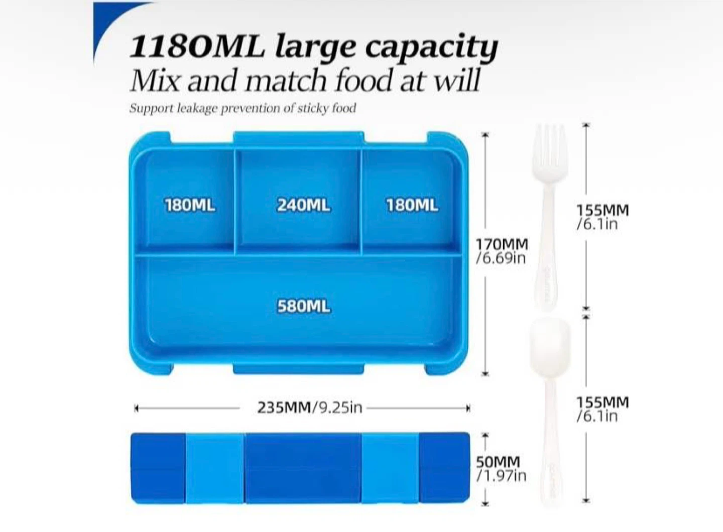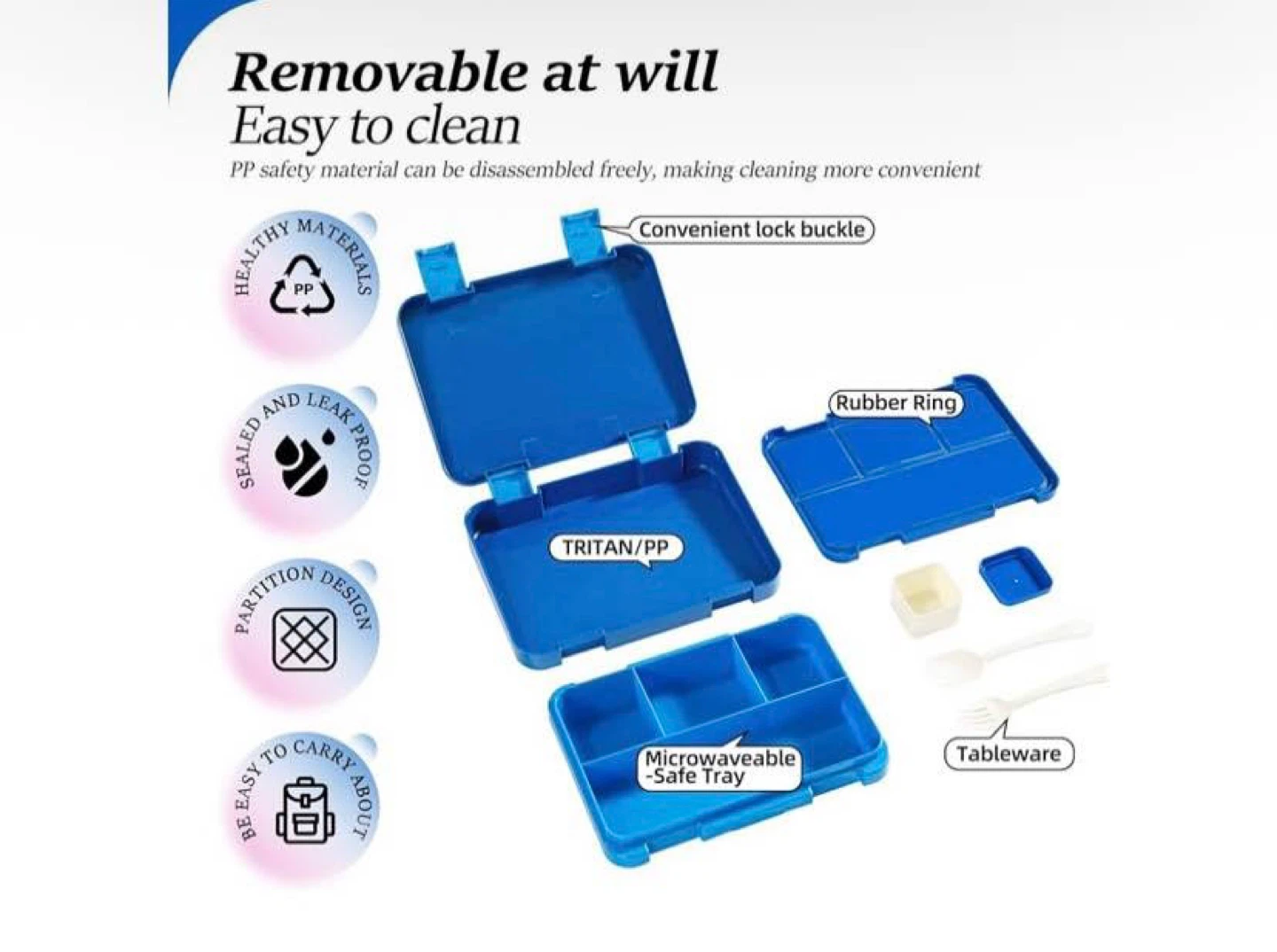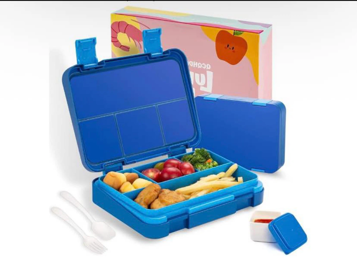 Bento lunch Box for Kids-4 Compartment,1300ml Heated Lunch Containers for Adults,Microwave & Dishwasher & Freezer Safe,School,Work,Picnics with Sauce Vontainers,BPA-Free (Blue)