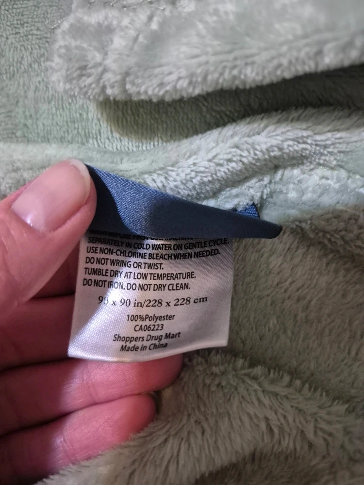Selling a lovely, soft throw blanket from the Prologue Luxury Collection. It's a nice light green colour and measures 90 x 90 inches (228 x 228 cm). Made of 100% polyester. Perfect for cozying up on the couch!