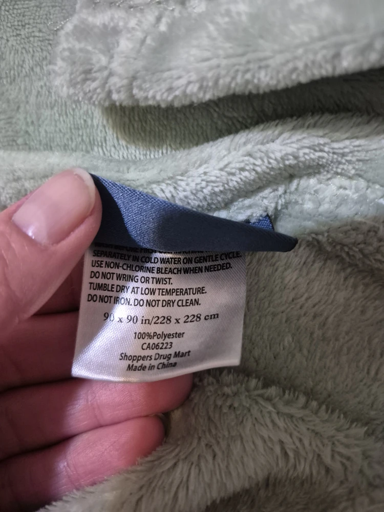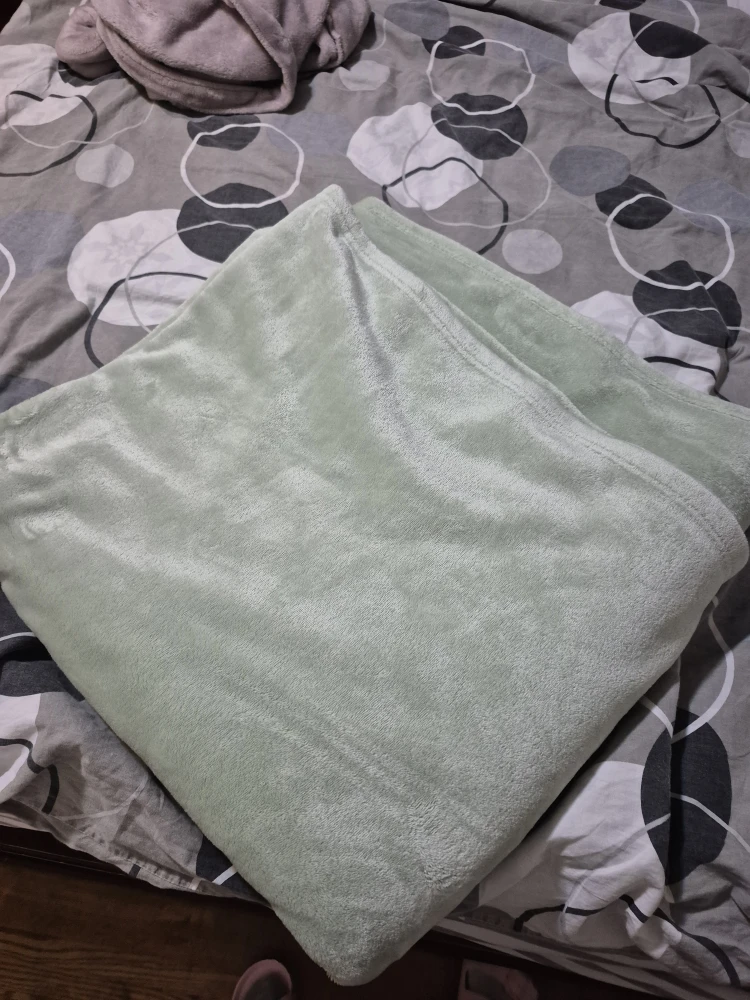 Selling a lovely, soft throw blanket from the Prologue Luxury Collection. It's a nice light green colour and measures 90 x 90 inches (228 x 228 cm). Made of 100% polyester. Perfect for cozying up on the couch!