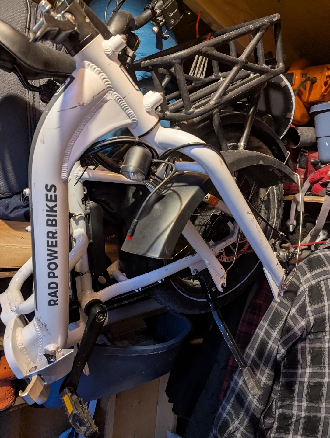 Selling a Rad Power Bikes ebike. It's a Class 2 ebike with a maximum speed of 32 km/h and a 500 Watt motor. The tires are sized 20 x 4.0. Needs a battery. otherwise like new, folds up like a suitcase.