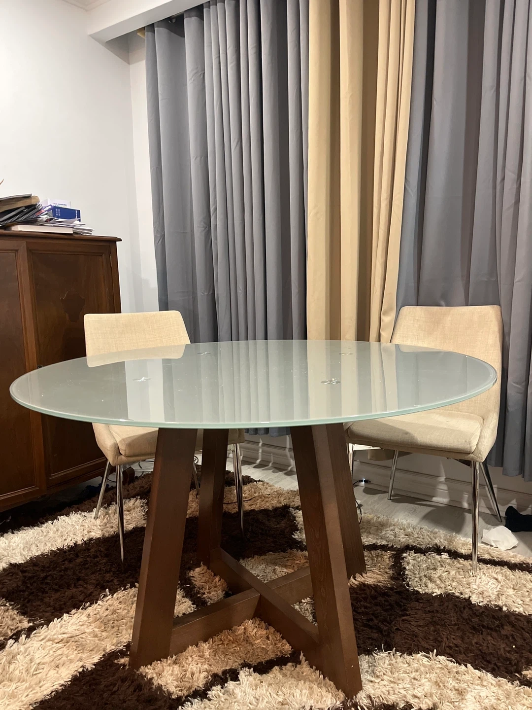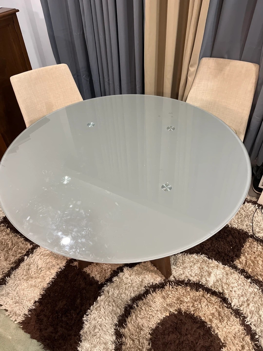 Buy & SellGlass Top Dining Table with Wooden BaseGlass Top Dining Table with Wooden Base$210Oval glass top dining table with a sturdy wooden pedestal base. Seats four comfortably. It's a great size for smaller dining areas.WHERE TO MEETCheck LocationView MapSELLERverifiedEmmanuelNewmarket Heights700 reviews1 chats·1 favorites·33 viewsSEND CHAT TO SELLERHi Emmanuel! I’m interested in your listing.Hi Emmanuel! I’m interested in your listing.Get the Karrot app to chatSign In to chat