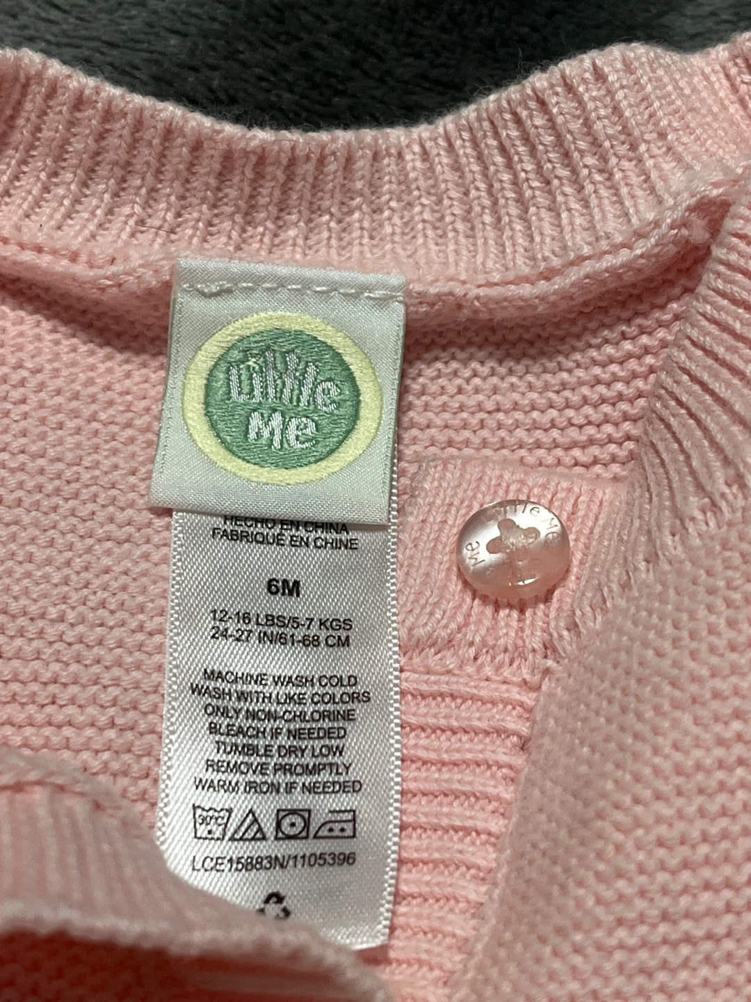 A cute Little Me knit outfit in size 6M! This adorable pink set features a cardigan and pants, both adorned with delicate floral embroidery. The material is soft and cozy, perfect for your little one. There are some stains on the cardigan.