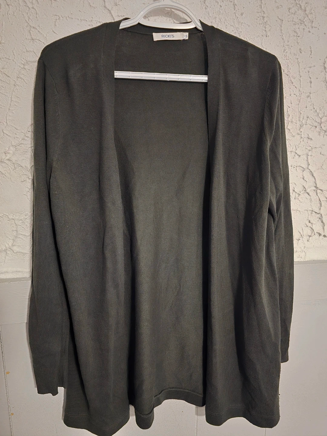 Knit cardigan Features a marbled burgundy colour and two front pockets. RICKI'S dark green knit cardigan. Both size Large and in excellent used condition. And a brand new black Xl cardigan. $5 each or all 3 for $10. Spb free home in Transcona.