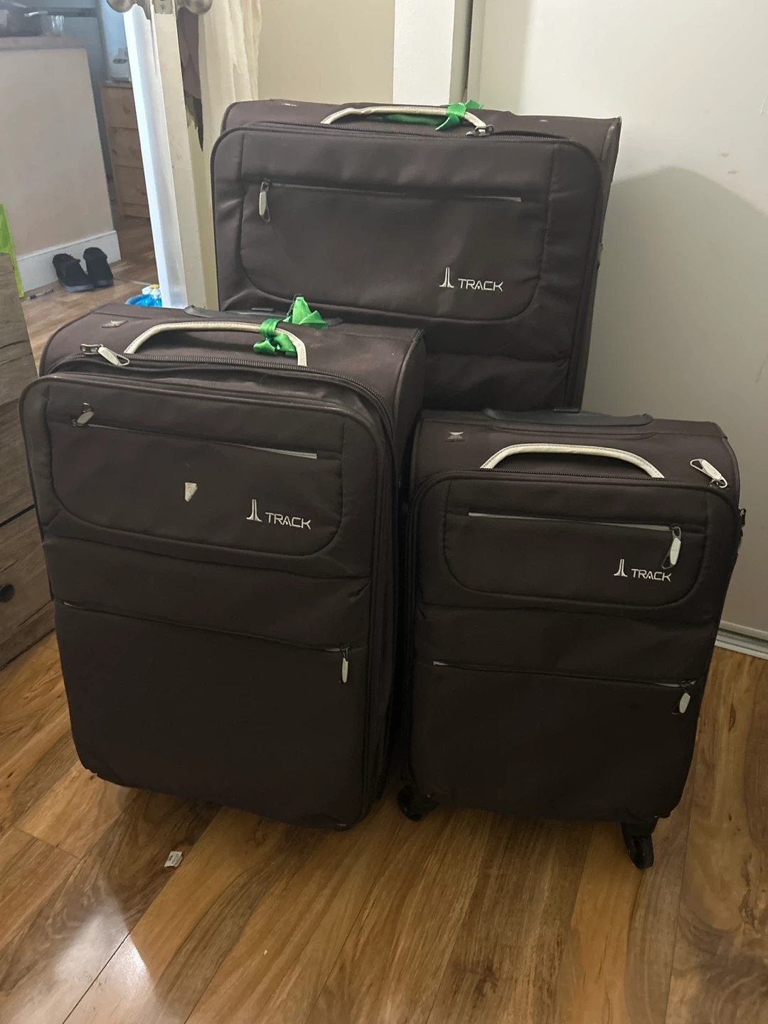 125Selling a Track luggage set, which includes three pieces of luggage in varying sizes. Perfect for all your travel needs! The set is in great condition and ready for its next adventure. You may need to change the wheels of the X-Large and medium sized ones.