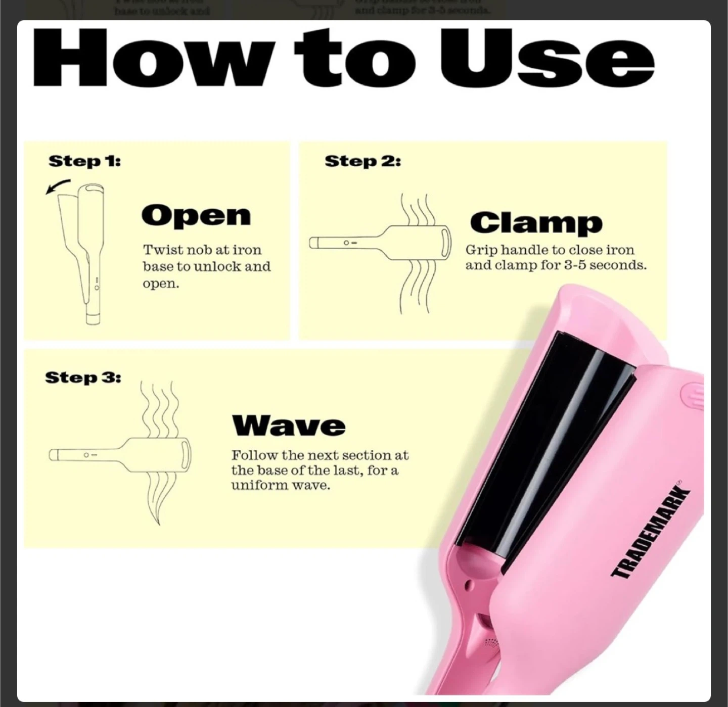 60Get flawless, bouncy waves with this TRADEMARK hair waver! It works on all hair types and lengths. It's easy to use, just open, clamp, and wave!