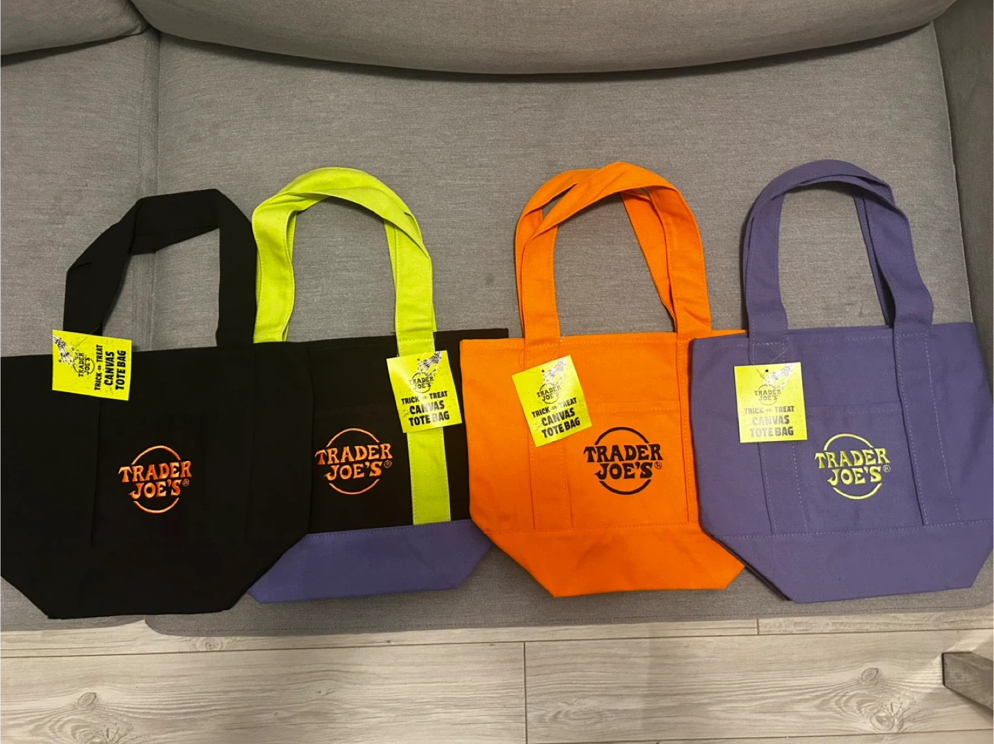 I have a few Trader Joe's Trick or Treat canvas tote bags available! They come in black, orange, and purple. Great for shopping or everyday use!