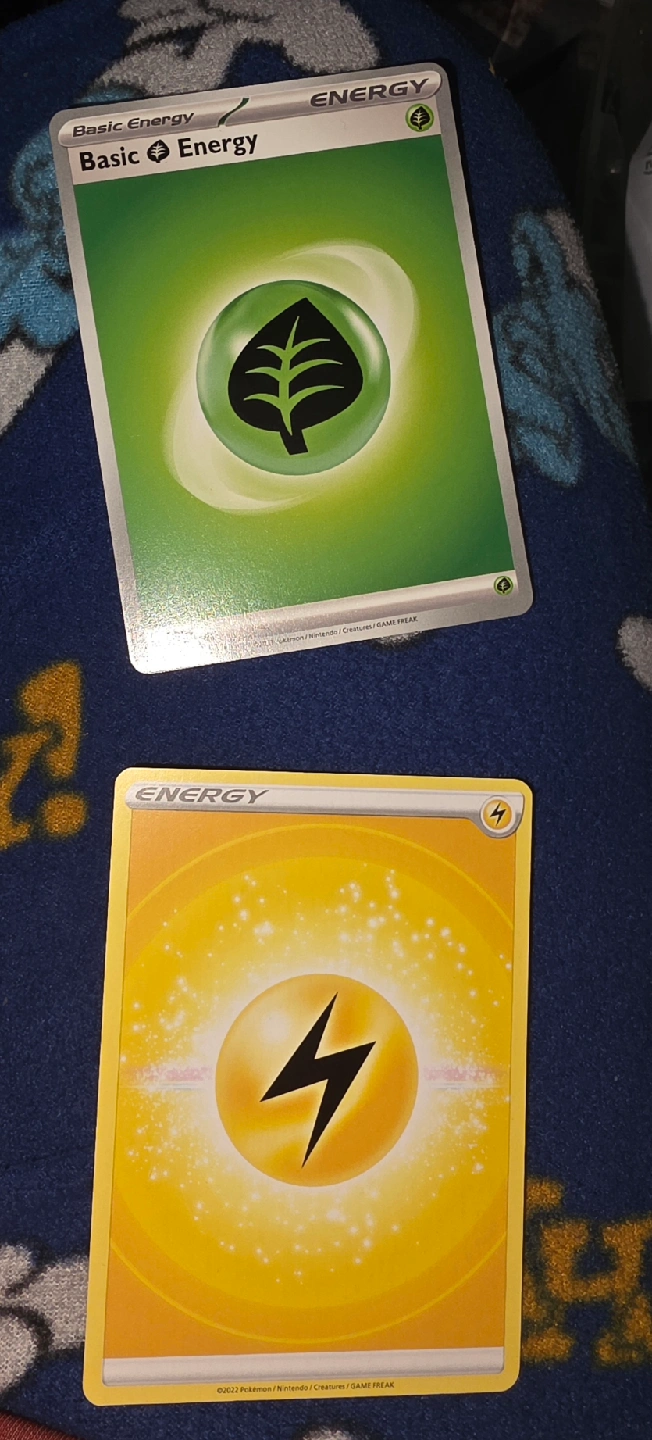 10Trading two Pokemon Basic Energy cards: one Grass Energy and one Lightning Energy. They're in great shape and ready for a new home!