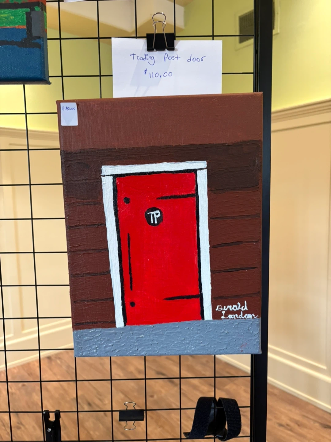 65Original painting titled "Trading Post Door" by Gerald London. It's a unique piece. This iconic door is part of the restaurant trading post in Fort Langley.