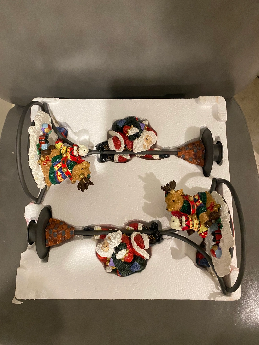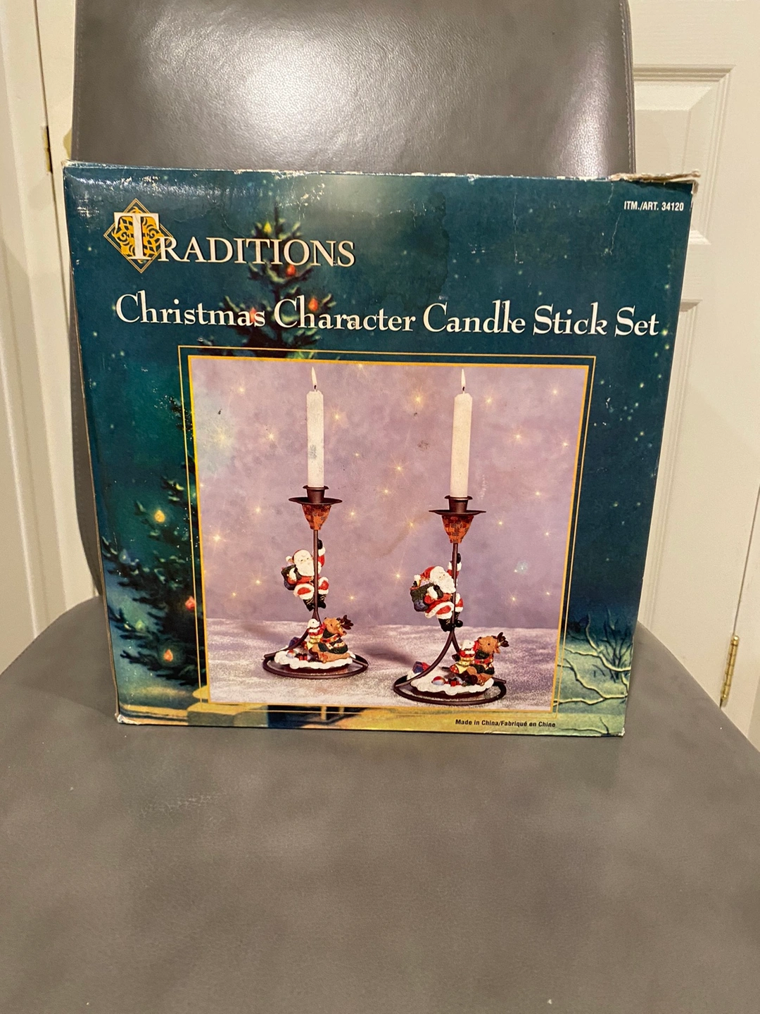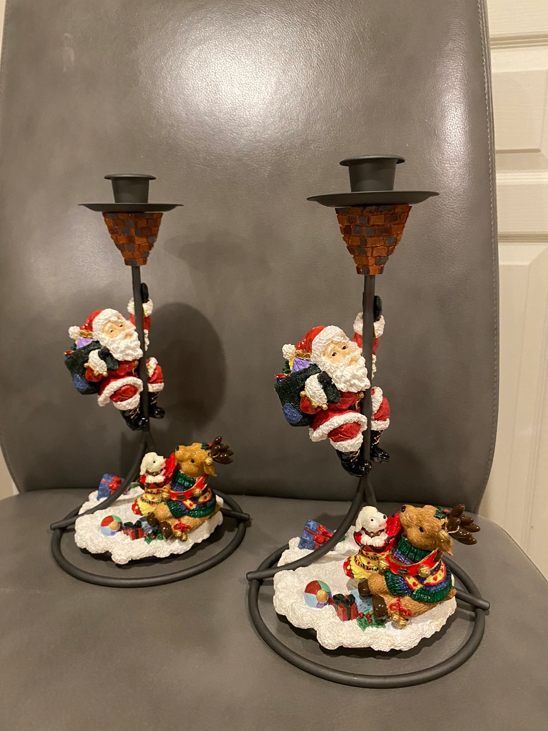 13Set of two candle sticks featuring a Santa and a reindeer. Made in China. Original box included. Santa Character Candle Stick Set 11” Tall. Pick up near Weston Rd and Wilson Ave or Yonge and St. Clair ave.