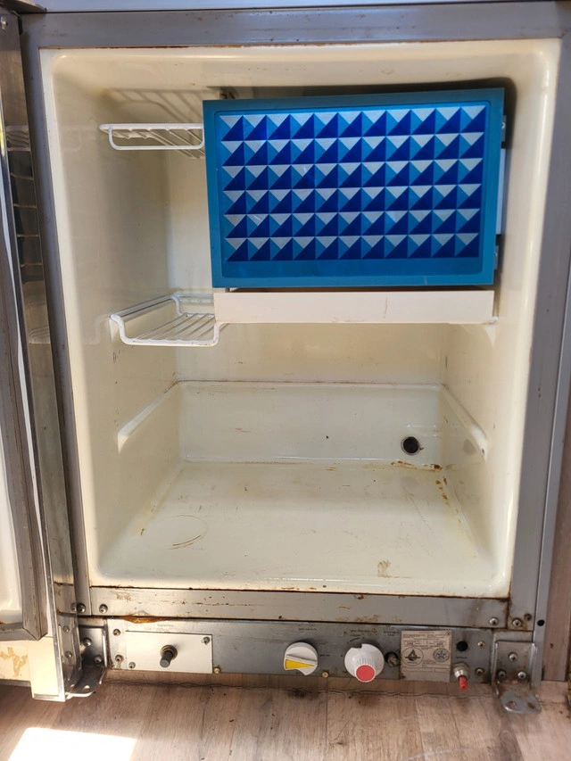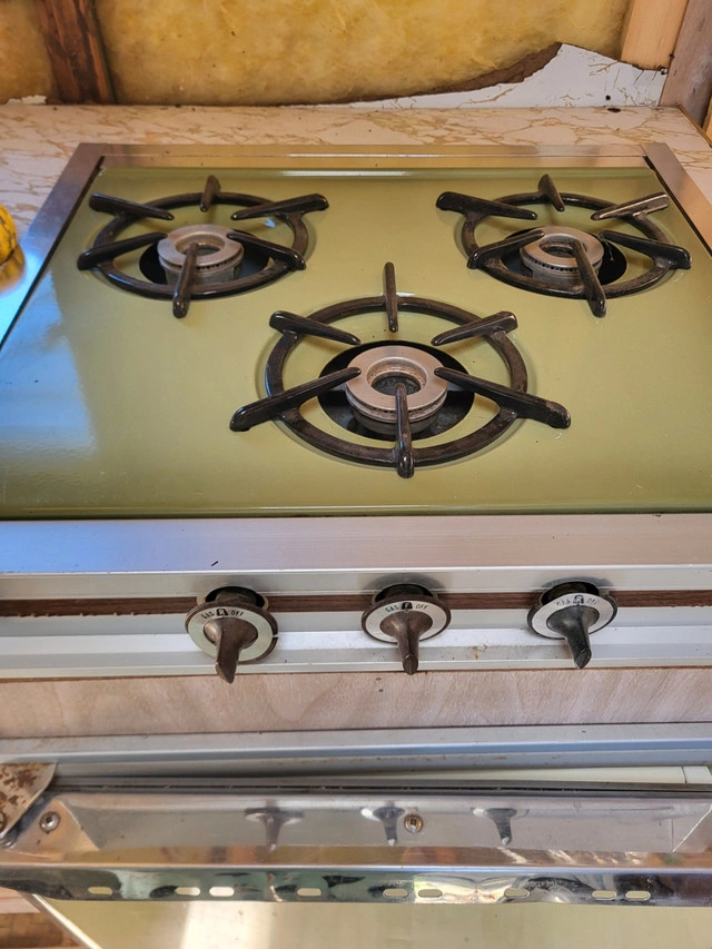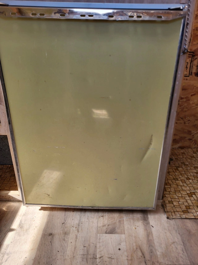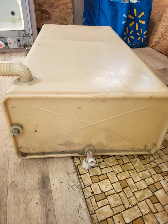 10Vintage trailer parts from an unknown trailer. The sink is stainless steel and has the plug and pump assembly and plumbing parts. The stove top has two burners that work for sure. The fridge is an unknown as there is no power to hook it up and test it. If you want to try to hook it up you are welcome to see if you can get it to work. There is also the water storage tank which is in good shape with no cracks. I bought the trailer used and it does not have any power hooked up inside so I was only able to test the elements. I have measurements for the sink, stove and fridge if needed. Sold as is.