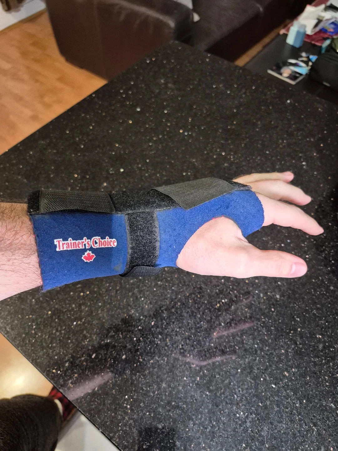 80Trainer's Choice wrist support for the left wrist. It's in good condition.