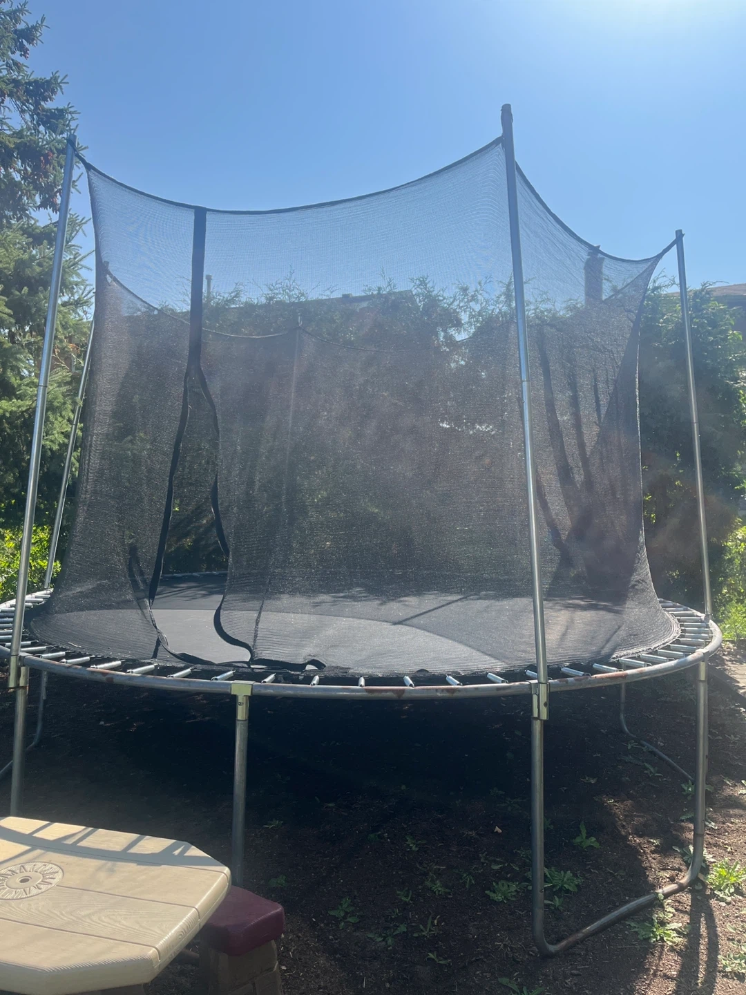 Selling a trampoline. It has some signs of wear, as shown in the pictures.
