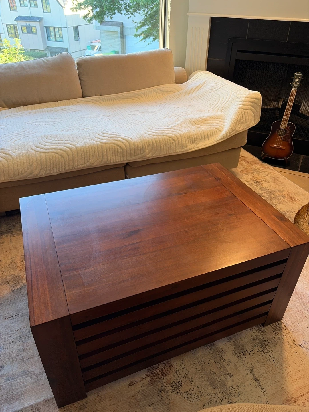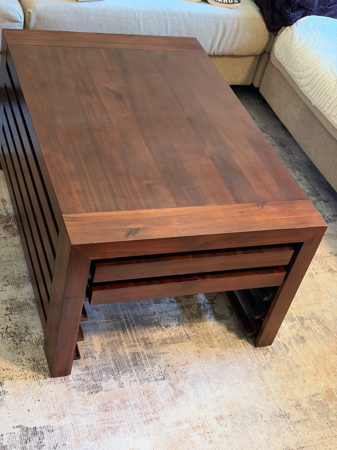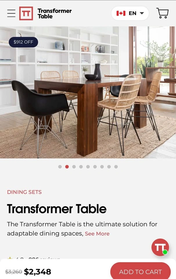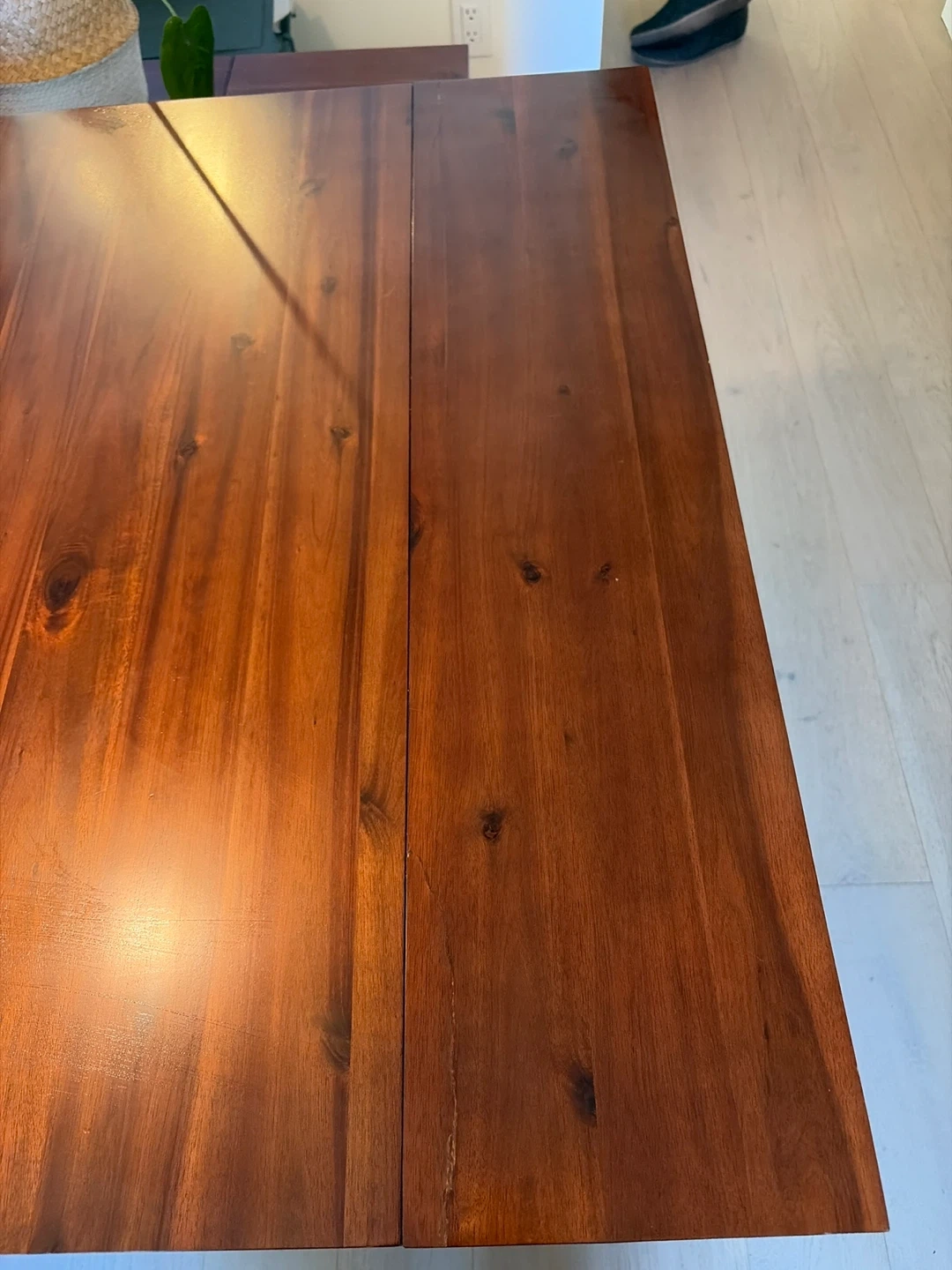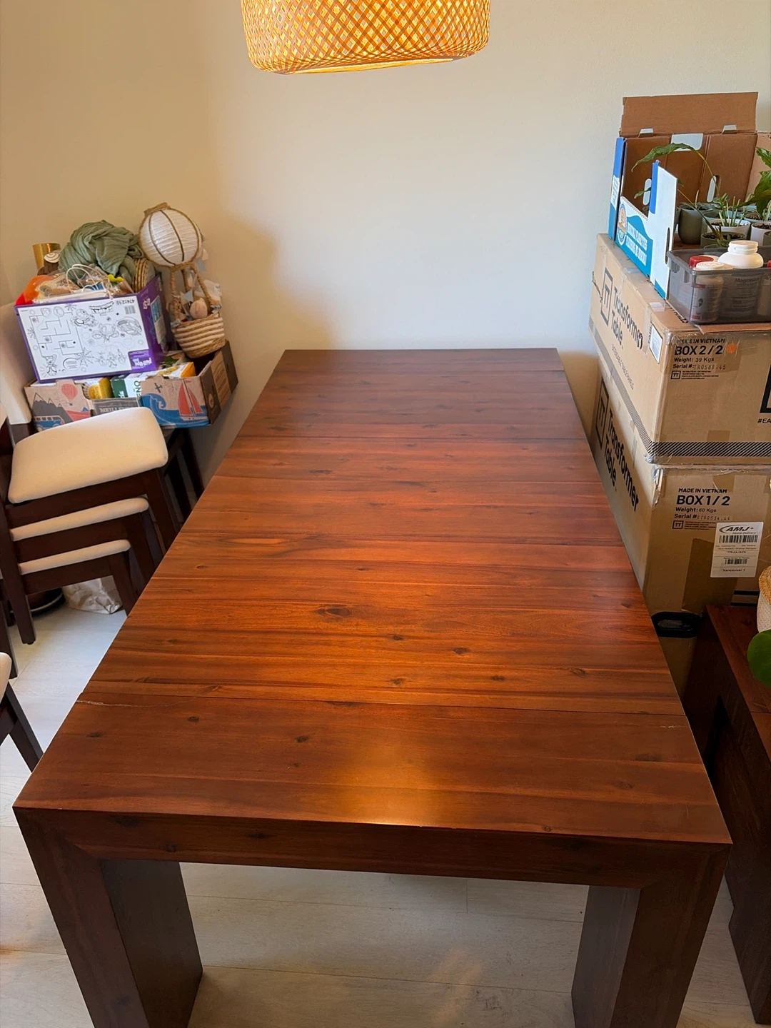 201This is the mahogany table from Transformer Table, with their specially designed coffee table that holds all the expansion leafs. It seats 2 people when all leafs are removed and up to 12 people when you put them all in! It got damaged while we were moving, so we’ve been using it for a few months while we waited for the replacement (which just arrived) so we are selling this one for cheap, even though we fixed it pretty well. The retail price today is $3184 which is on sale. I’m listing this for $900 OBO for a quick pickup in Fairview (near VGH). The condition is very good except for the damaged end (last photo)
