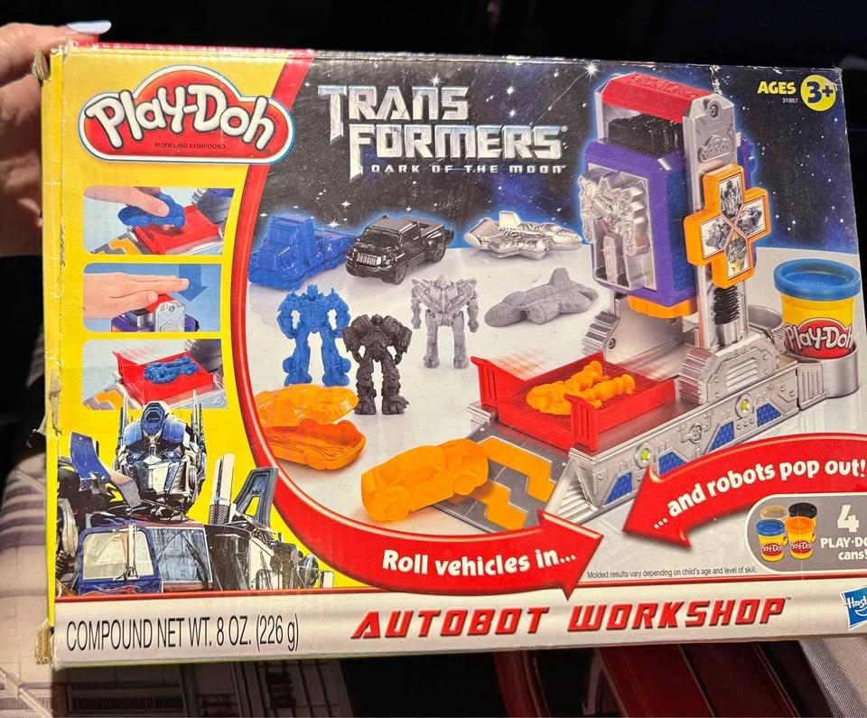 10Transformers dark of the Moon auto bot workshop. Use the moulds to shape Transformers 3 characters in vehicle form. Then, turn them into robots in the workshop. Pick up near 200 Street and 72 Avenue in Langley.