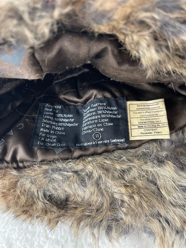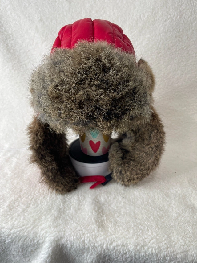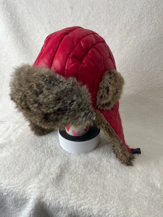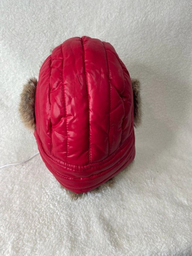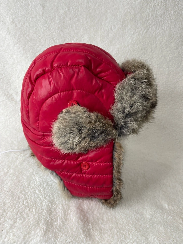 267Stay warm and stylish with this Nathaniel Cole trapper hat, featuring a quilted red exterior and rabbit fur trim. This hat is in good, used condition, ready to keep you cozy during the colder months.