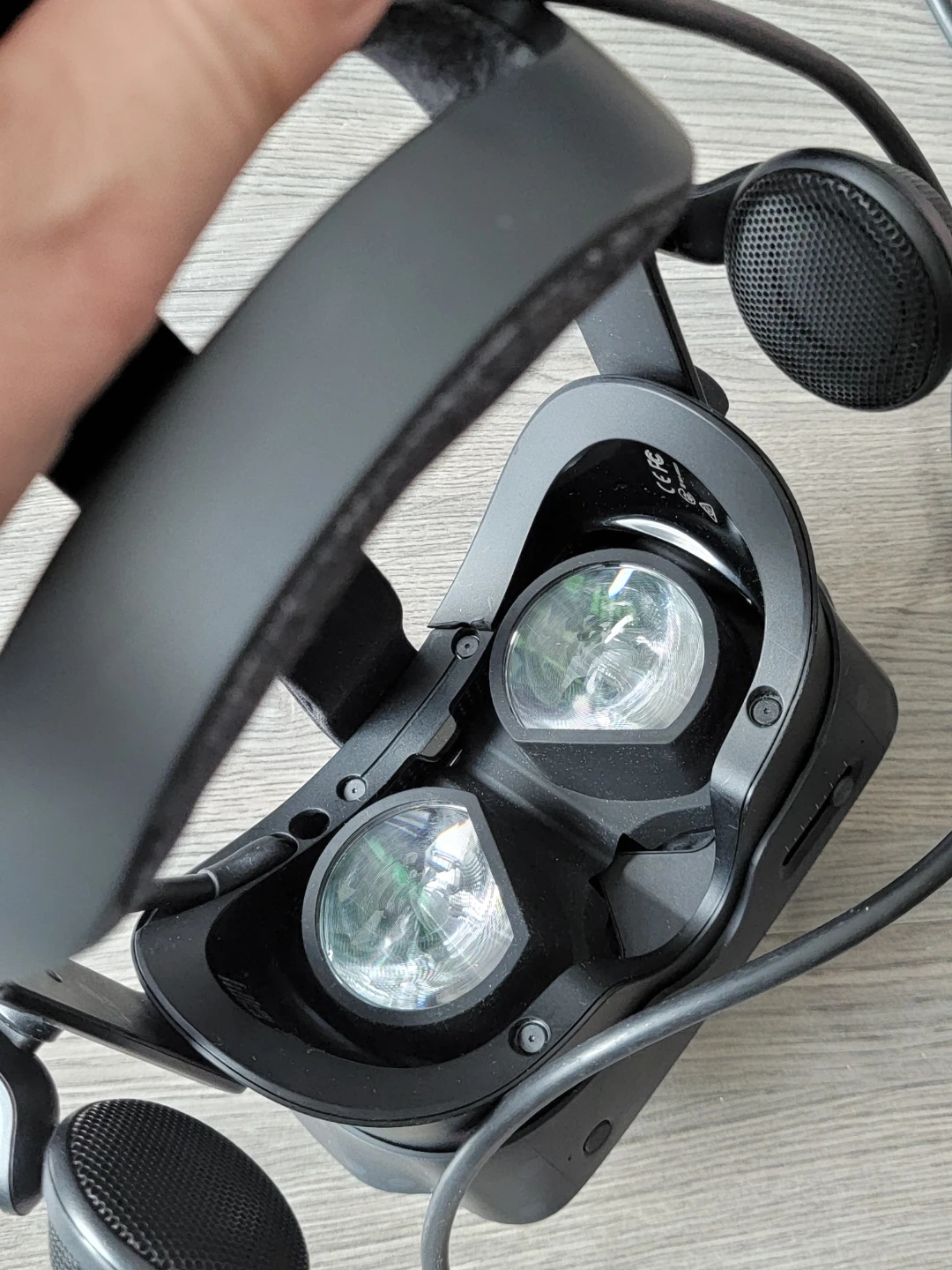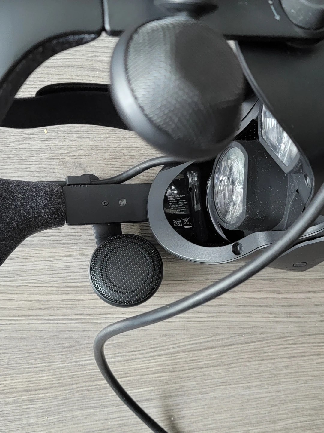 This is the Valve Index VR headset. It features integrated headphones for immersive audio. The headset has adjustable straps for a comfortable fit. It's great for virtual reality gaming and experiences!