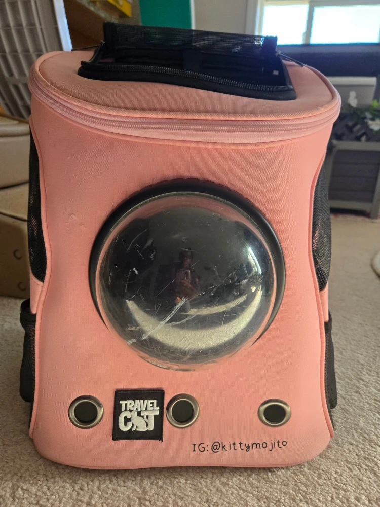 10Travel Cat Brand backpack for sale - $75 Features: Structurally sound with no tears or rips Removable bubble window with flat mesh alternative Durable material Condition notes: Minor scratches on bubble window Glue residue from removed stickers Ironed-on Instagram tag Weathered but still in great shape cash only, and pickup is in south Terwillegar. No e transfers