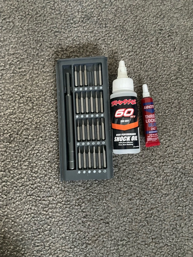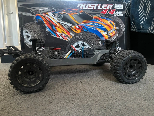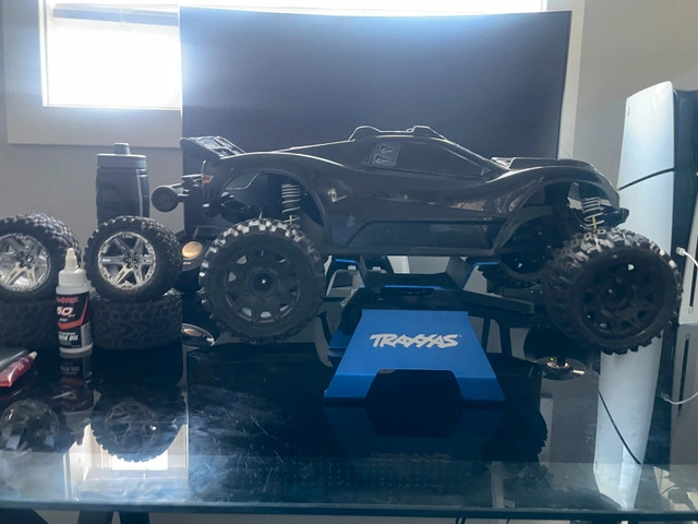 10Selling my Rustler 4x4 VXL in excellent condition with lots of extras included. This is a high-performance RC car ready to rip, perfect for both beginners and experienced hobbyists. Upgrades & Add-ons: • Brand new Badlands tires (great traction) • Motor cooler for longer runs • Car stand for storage & maintenance • Includes battery + charger • Original old wheels included • Controller included (ready-to-run) • Extra suspension oil & Loctite • Full screwdriver kit for maintenance • Original boxes included (except battery box) • Custom black body. Let me know if you're interested!