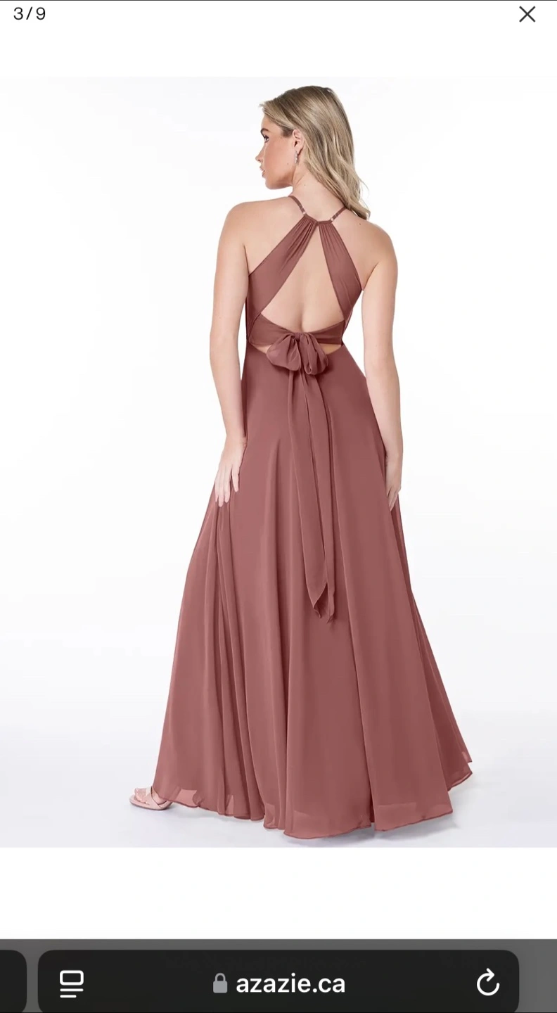 Azazie Bridesmaid Halter Dress - Desert Rose in Size A2