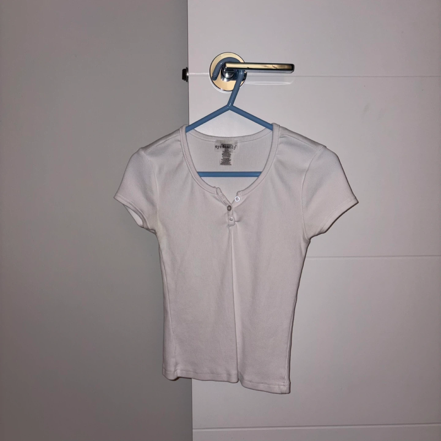 Eye Candy White Ribbed Henley Top (S)