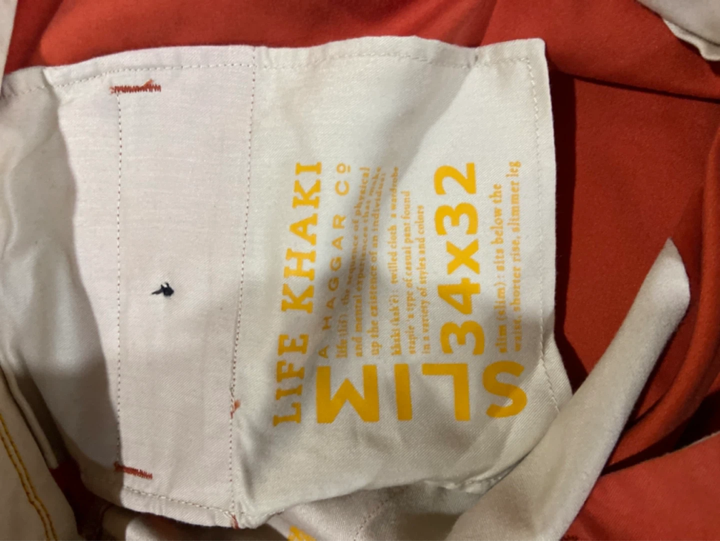 These Haggar pants are size 34x32 with a slim fit. They are a bright orange colour. Perfect for casual wear! 20