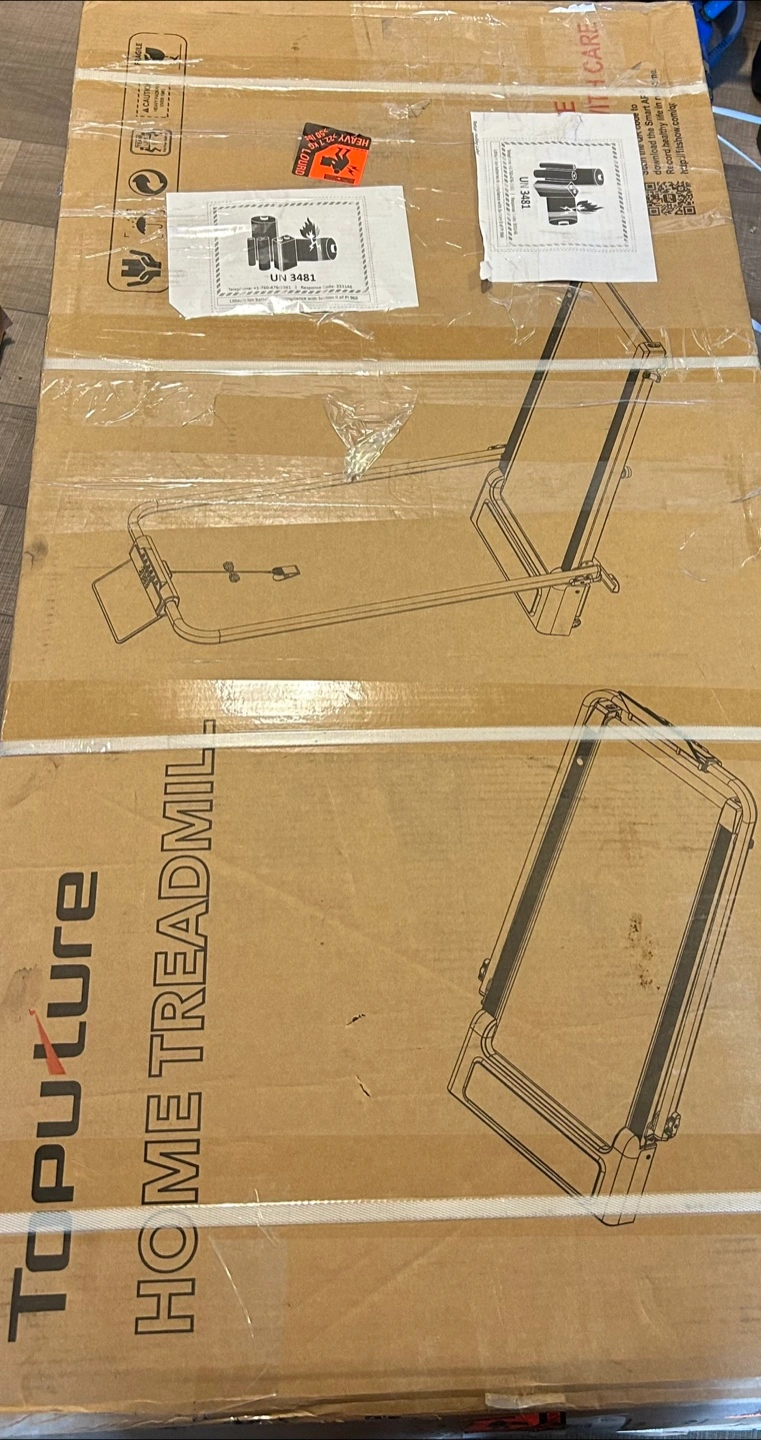 5Price: $300 Manufacture: Topture Home Treadmill Model: TP2 Color: Black-Red Condition: New-Open Box Pickup: 402 Shuter St, Toronto, ON M5A 1X6 Cash: Payment on Pickup Looking to stay fit without leaving home? This TOPUTURE 2-in-1 incline treadmill is the perfect solution for walking or running, with premium features packed into a compact, foldable design that slides easily under a bed or couch. Manual 7% Incline – More realistic hill simulation to burn more calories and strengthen your legs. Easy to adjust – no tools needed. 2-in-1 Mode with Handlebar (42") – Use with or without the handrail. Great for under-desk walking or secure running. Supports users up to 6'2". Remote Control w/ Magnetic Back & Pause Function – Quickly change speed (0.6–7.5 MPH), pause workouts, and magnetically store the remote on the treadmill. Smart APP Compatible – Sync with Sport App to track data and share progress. Comes with tablet/phone holder for music, movies, or video chats. Shock-Absorbing 5-Layer Belt – 40" x 16" running surface with 6 silicone shock absorbers + 2 rubber pads for knee protection. No Assembly Needed – Just unbox and start using! Portable & Space-Saving – With front wheels, easy to move and store. LED Display – View speed, time, distance & calories burned. 12 Workout Programs – Built-in variety for your fitness goals. Maintenance-Friendly – Special lubrication hole design makes upkeep easy.