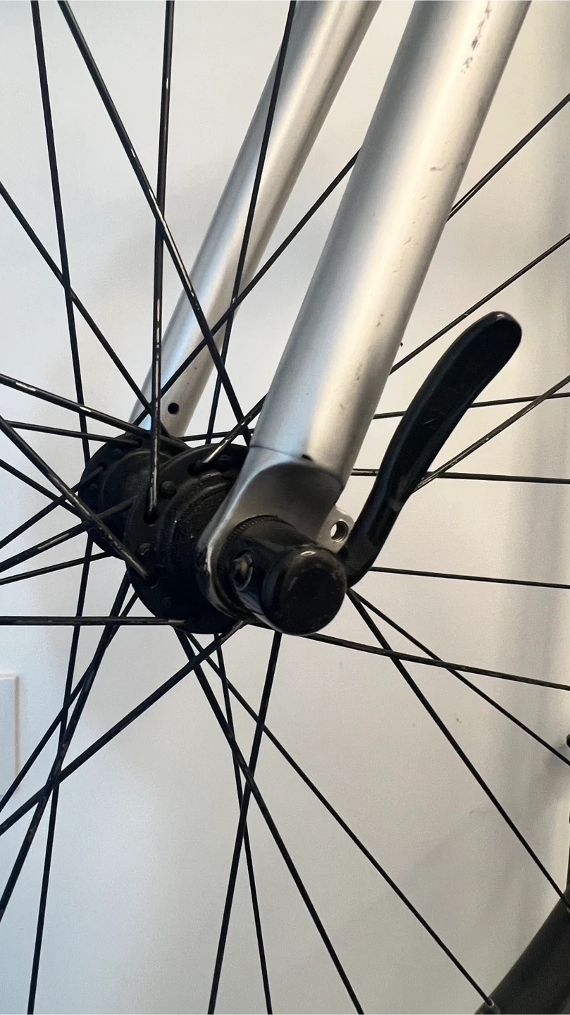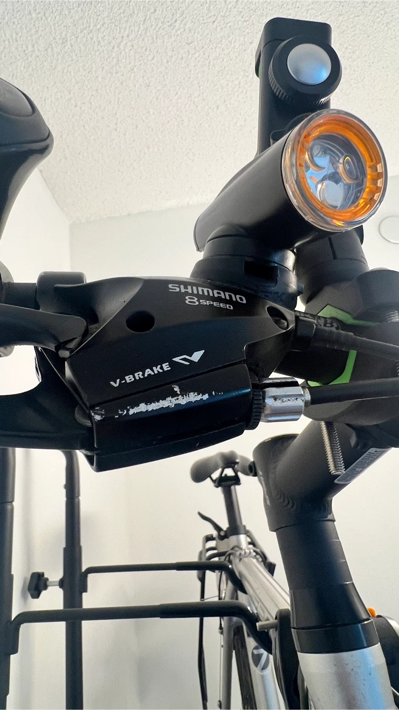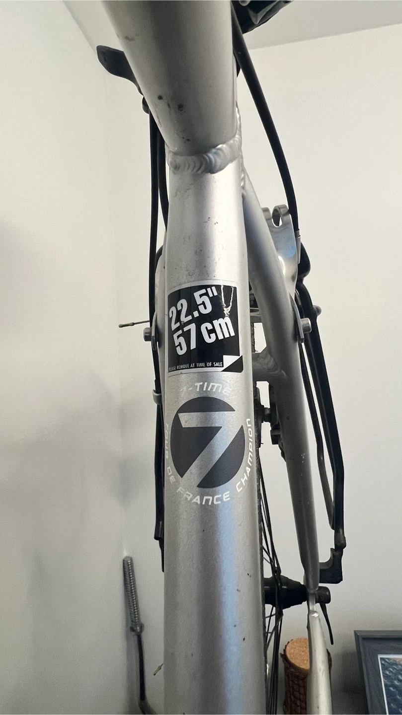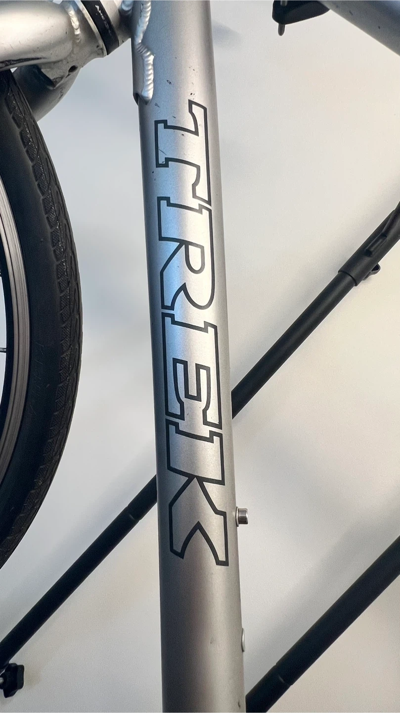 23Selling TREK bike in silver. It has Shimano 8 speed V-brakes. The frame size 22.5" / 57cm. Perfect condition ready to go bike. Gently used and stored indoors. It comes with a rear carrier, light, bell and a sturdy phone mount. The front wheel can be detached for easy storage or transport in a car. Also selling separately the helmet and a lock to go with the bike, please ask for pictures. Pick up Kipling Avenue and the Queensway Etobicoke.