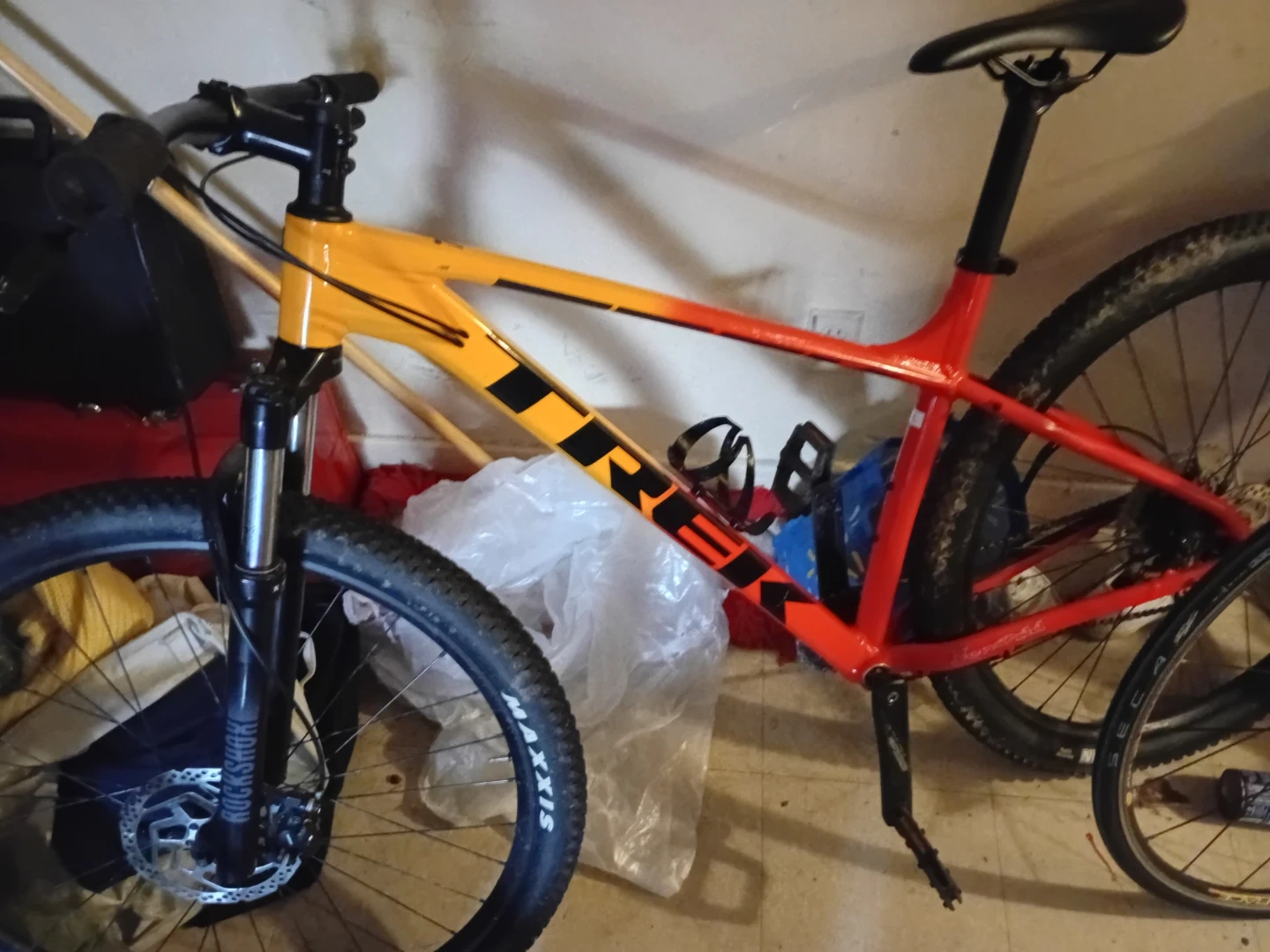 10Selling a Trek mountain bike in a striking red and yellow colour scheme! It's in good condition and ready for some off-road adventures. Perfect for hitting the trails around town!