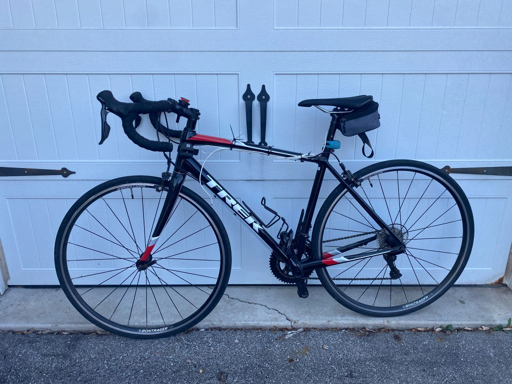 Selling a Trek road bike in black and white. It's in great condition. Comes with a lot of accessories shown in pictures! Perfect for anyone looking to get into cycling or upgrade their current bike