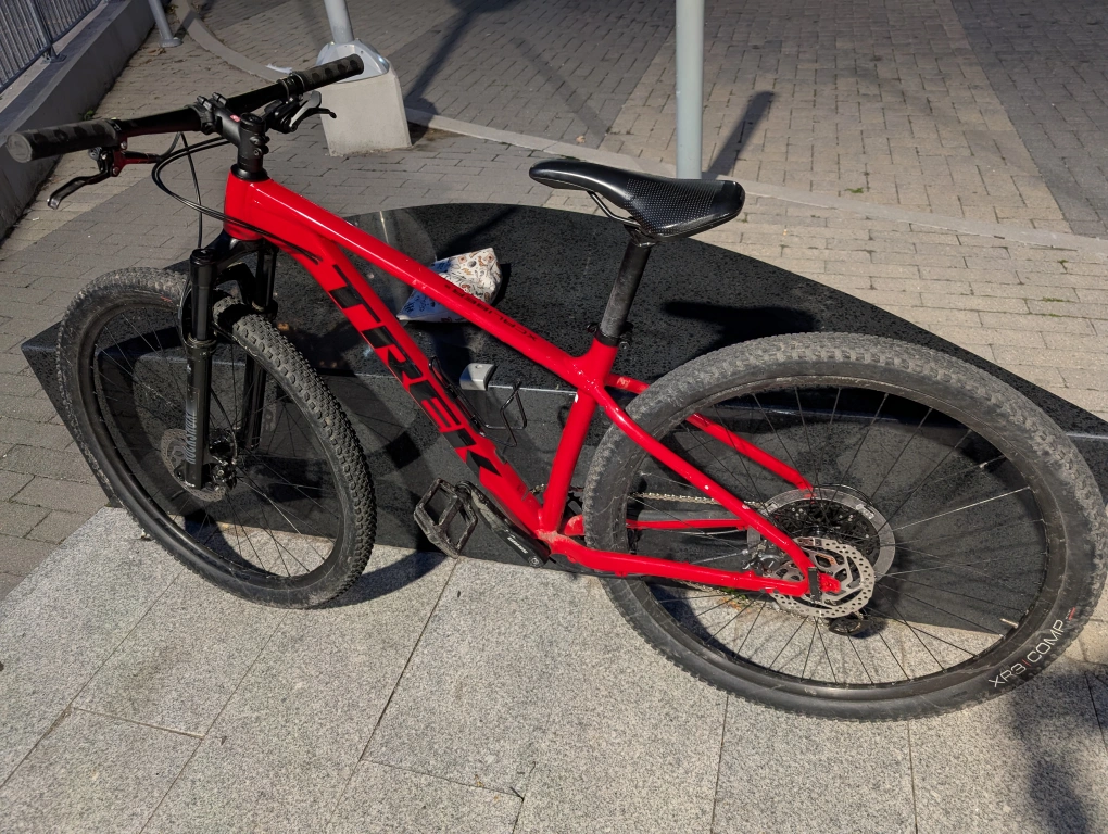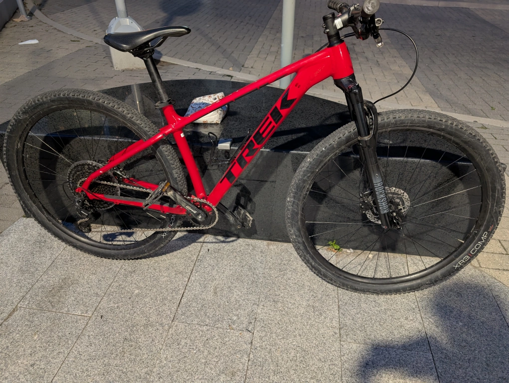50Selling a Trek mountain bike. It's red and has a RockShox suspension. The tires are XR3 Comp. It also has SRAM components. Brand new KCM chain and freshly tuned Medium frame 29" Wheels