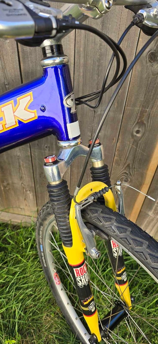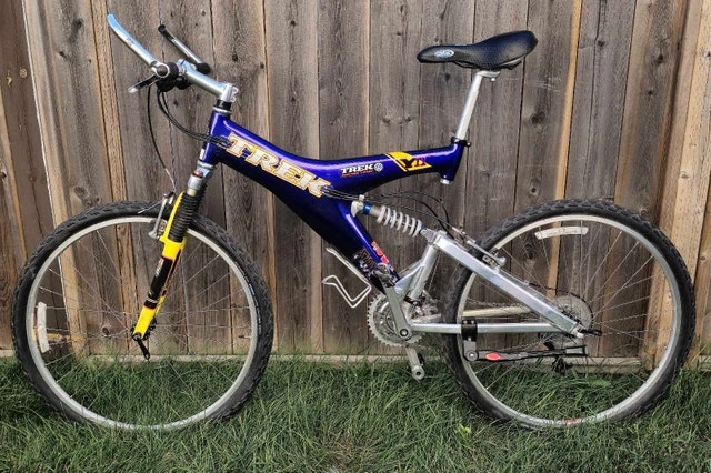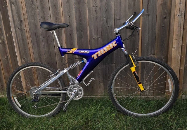 5• Collectors Item • Vintage Trek Y11 in Amazing Condition • Full Suspension Mountain Bike • Carbon Fibre Frame Materials: Alloy metal, carbon fibre - Size: Adult size Condition: Excellent with minimal scratches - New SCHWALBE LAND Cruise Tires - No Issues - Newer Gel Saddle For Sale By: Owner