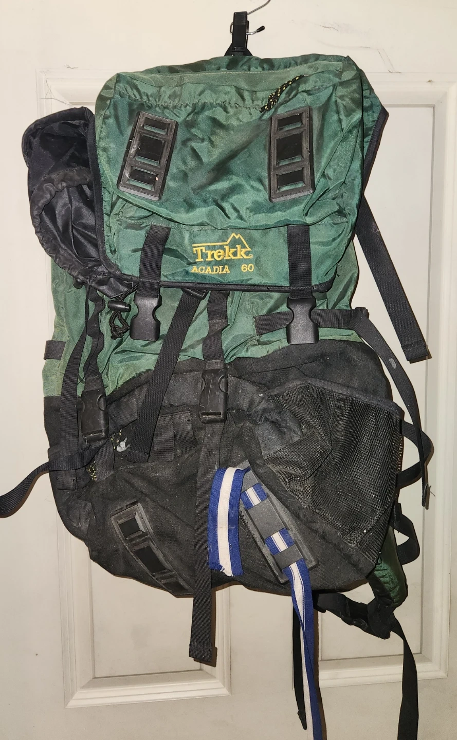 15Selling a Trekk Acadia 60 backpack in green and black. It's a sturdy backpack, perfect for hiking or camping. Shows some signs of wear, but still has lots of life left!