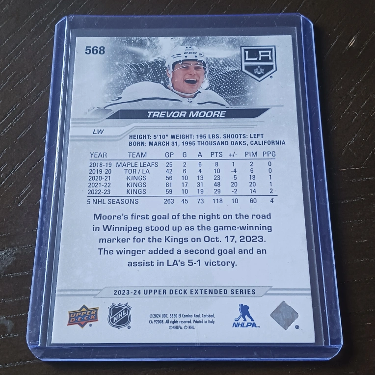 26Selling a Trevor Moore hockey card from the 2023-24 Upper Deck Extended Series! It's in great condition and would be a fantastic addition to any hockey card collection