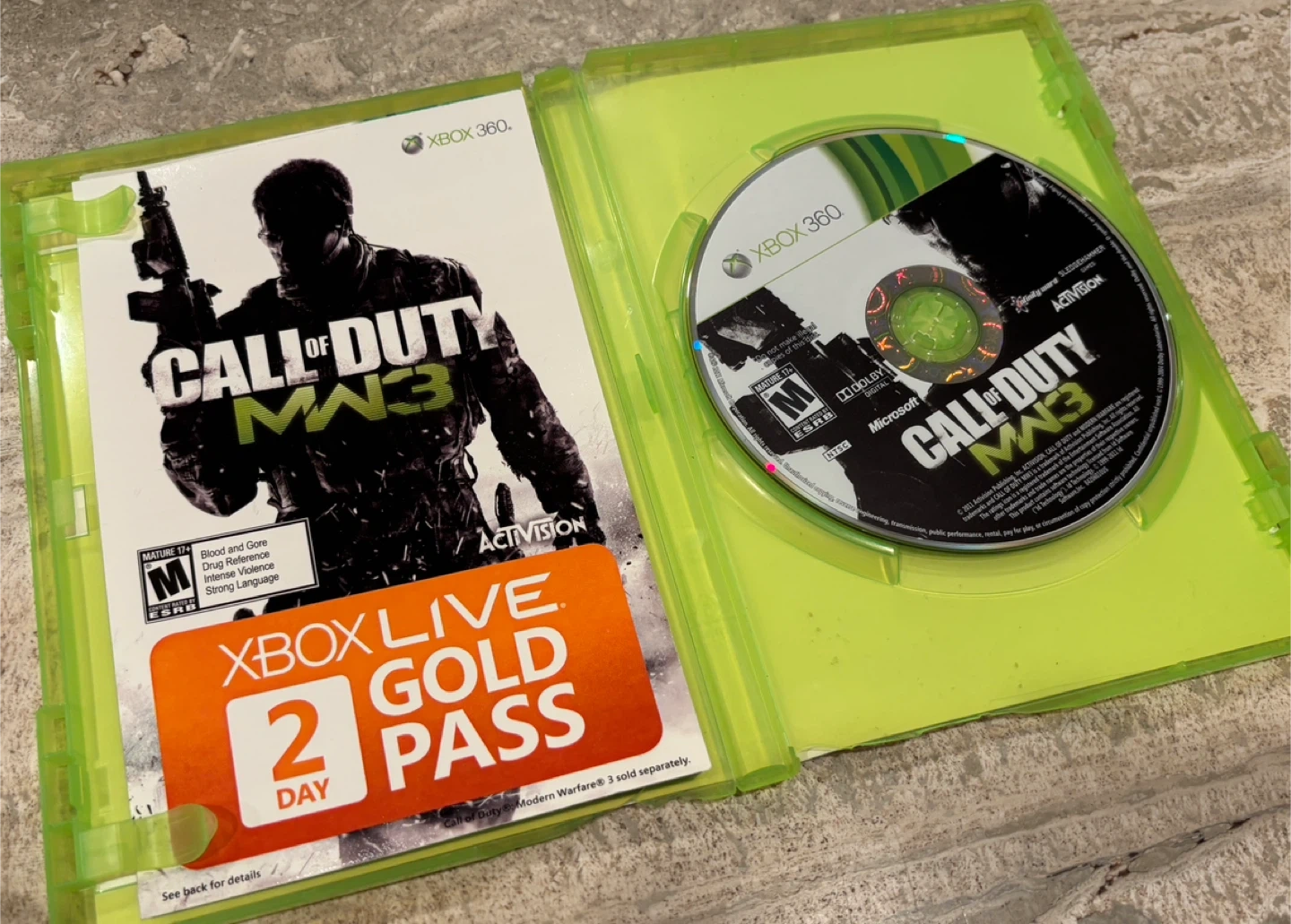 Call of Duty: Modern Warfare 3 for Xbox 360. This game is rated Mature 17+. It includes the original case, disc, and manual. Also comes with a 2-day Xbox Live Gold Pass.