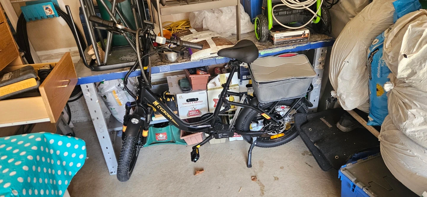 Selling a Cycrown ebike in great condition! It's a fun and convenient way to get around town. This electric bike is perfect for commuting or leisurely rides. Ready for a new owner! I bought in april of this year from bikers zone.I paid sixteen hundred dollars cash.I fell off the bike's second ride.And broke my collarbone, scapula and four ribs.I need to get rid of this bike.The left handle brake handle is sheared off.It's about thirty five dollars to replace.I will accept eleven hundred dollars.