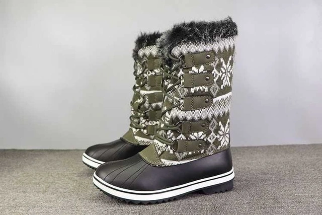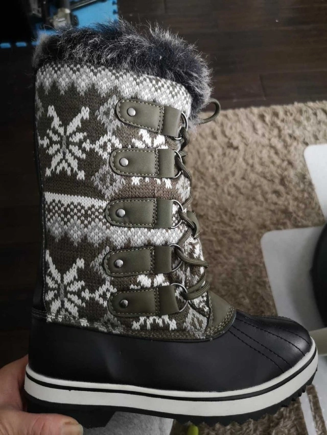Keep your feet cozy this winter with these new winter boots, size 6.5. These boots feature a stylish knit design with faux fur trim, perfect for snowy days or a casual outing.