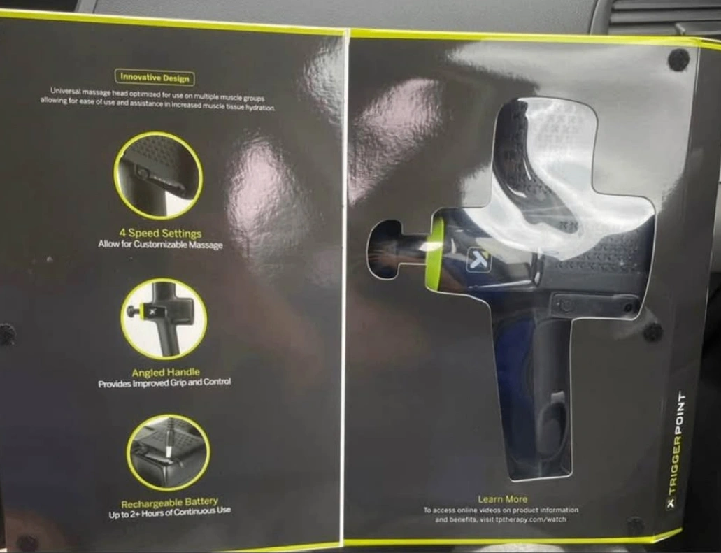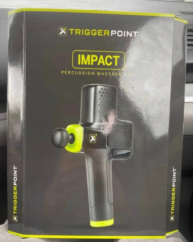 10Brand New Sealed TriggerPoint Impact Percussion Massage Gun. Helps increase blood flow, hydrate muscle tissue, and improve the body's performance both pre-and post-workout. This product is suitable for anyone who loves massage, wants to aid post workout aches and improve circulation. Reduce stress, pain and tissue tension and enhance recovery from a workout. *Original $300 • Rechargeable battery for 2 hours of continuous massage • 4-speeds (based on user guide) include: /- 300 rpm • Speed 1: 2100 rpm • Speed 2: 2400 rpm • Speed 3: 2900 rpm • Speed 4: 3300 rpm • Weighs approx. 2.4lbs and measures approximately 7.5" x 2" x 10.3"