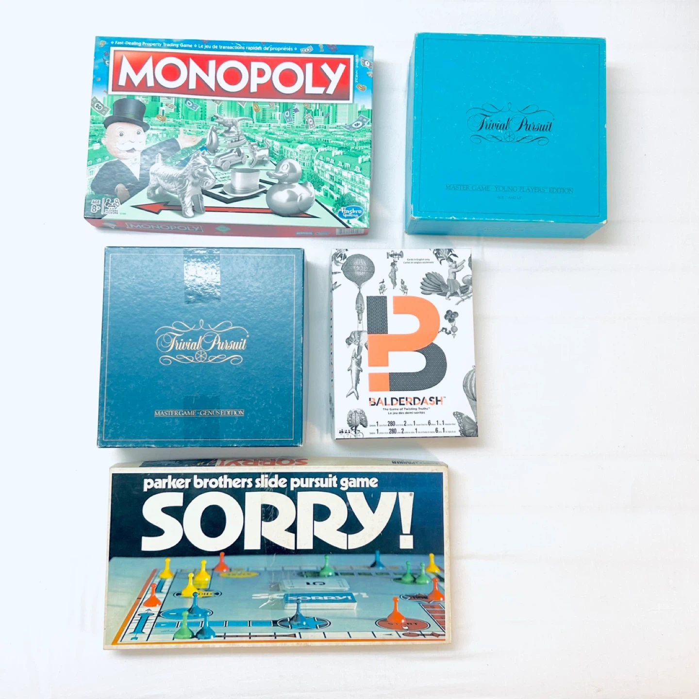 123Used for Airbnb! Selling a couple of classic board games! I have Trivial Pursuit Master Game Young Players' Edition and Parker Brothers Sorry! game. Both games are in good condition and ready for a new home! $10 each or all 4 for $25