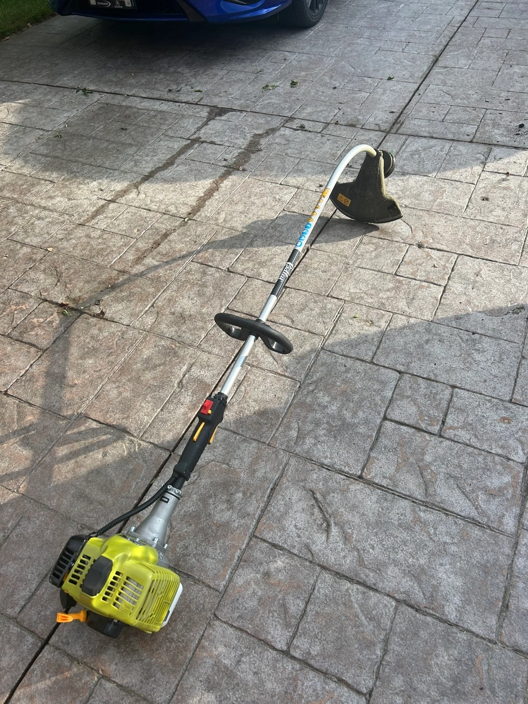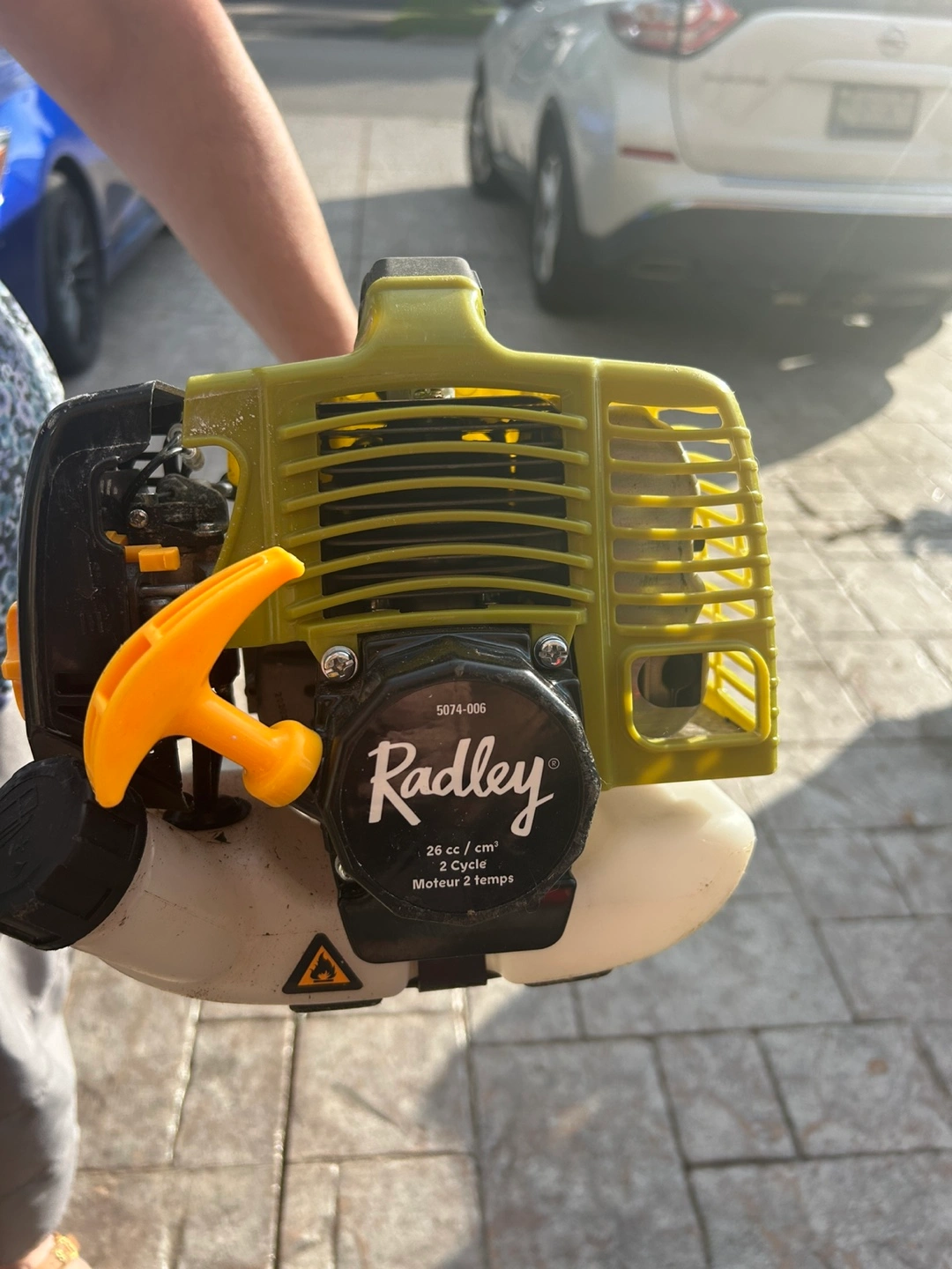 Used Radley gas-powered string trimmer. 25 cc, 2-cycle engine. Curved shaft. Good for trimming around gardens and landscaping.