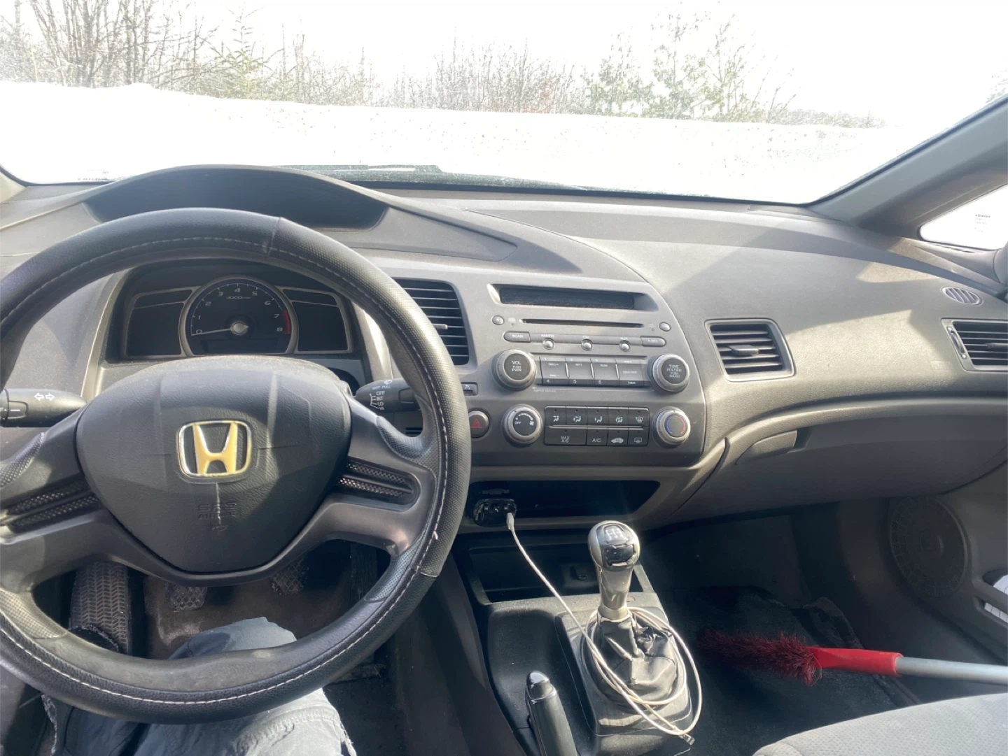 A black Honda Civic sedan is for sale. It has a manual transmission. This car would be useful for daily commuting.