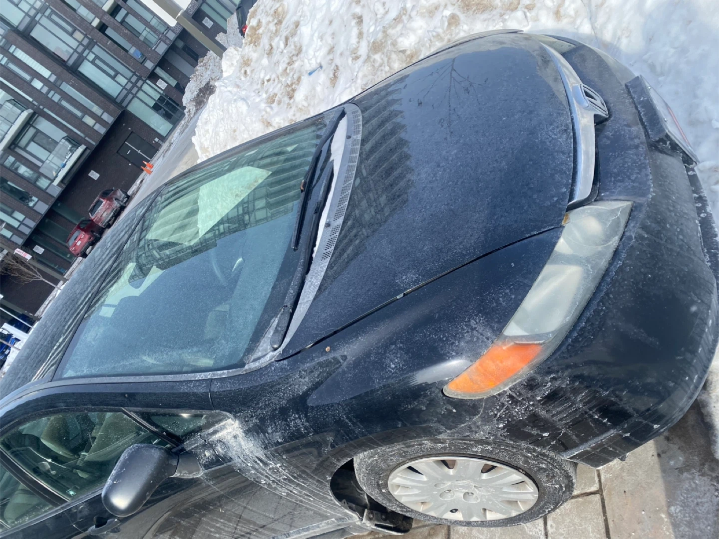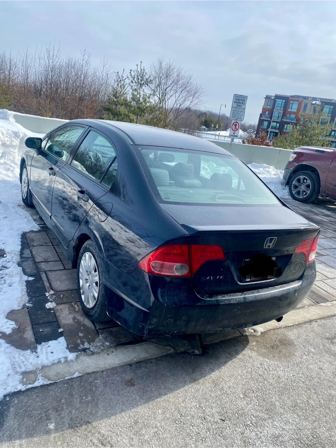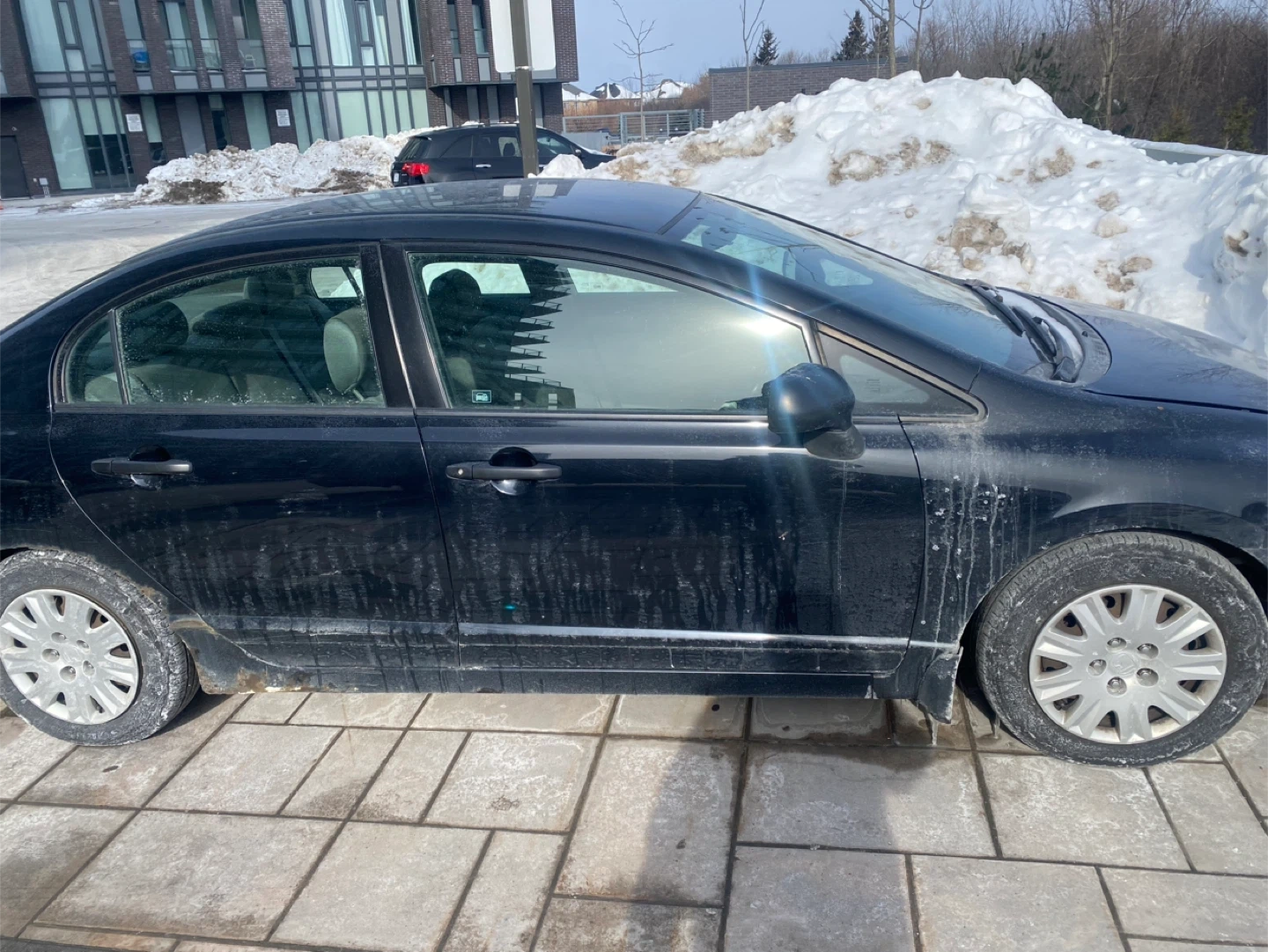 A black Honda Civic sedan is for sale. It has a manual transmission. This car would be useful for daily commuting.