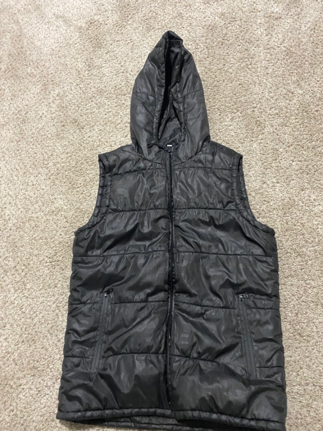 Buy & SellBlack Hooded Puffer VestBlack Hooded Puffer Vest$10Men's black puffer vest. Features a hood and zipper closure. Two zippered pockets. Excellent for layering.ConditionNewSizeMWHERE TO MEETCheck LocationView MapSELLERRyanChappelle362 reviews0 chats·0 favorites·4 viewsSEND CHAT TO SELLERHi Ryan! I’m interested in your listing.Hi Ryan! I’m interested in your listing.Get the Karrot app to chatSign In to chat