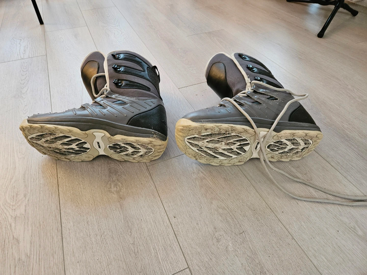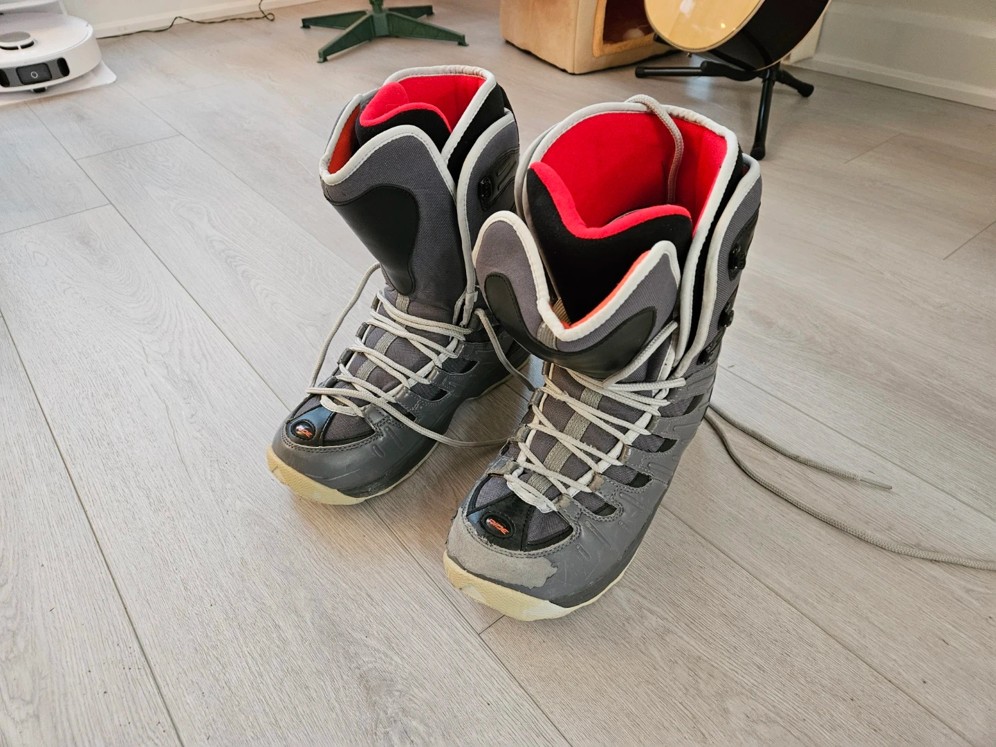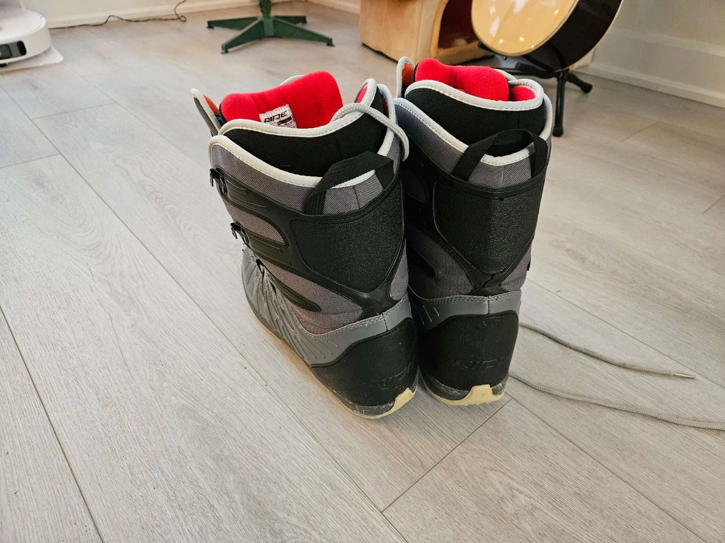 Selling a pair of Ride snowboard boots in used condition. The size is US 13. They're grey and black with a red lining. Perfect for hitting the slopes this winter!