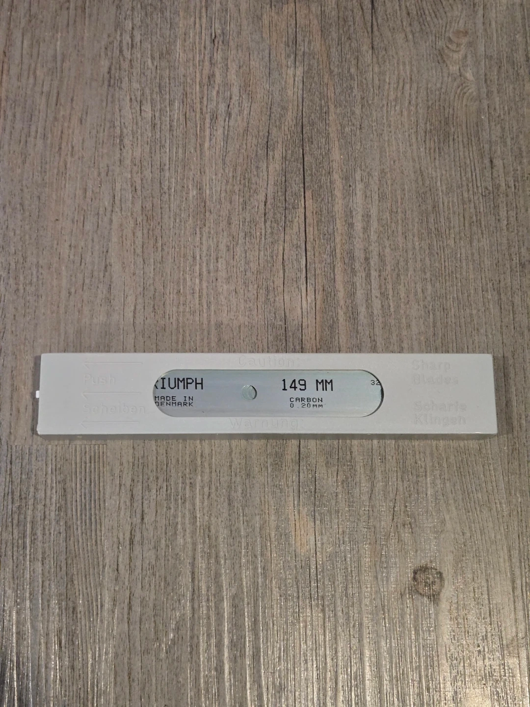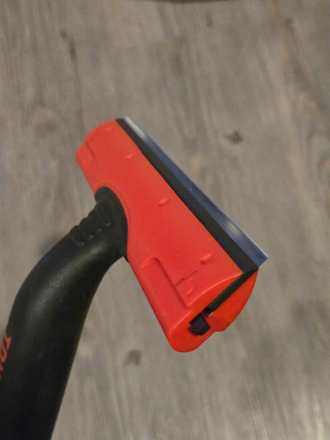 This Triumph scraper tool has a 149 MM width. It's made with a carbon steel blade for effective scraping. The handle is black and red plastic. Great tool for window cleaners.