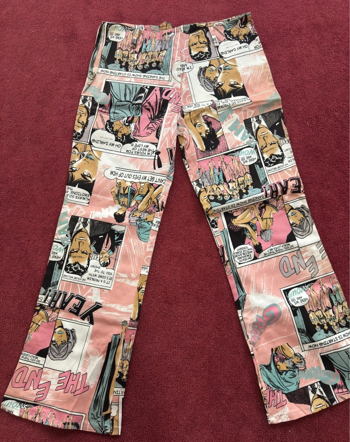 Fun comic strip print pants by WECollection. These pants are a statement piece with a bold and colourful design. They're perfect for adding a unique touch to your wardrobe.