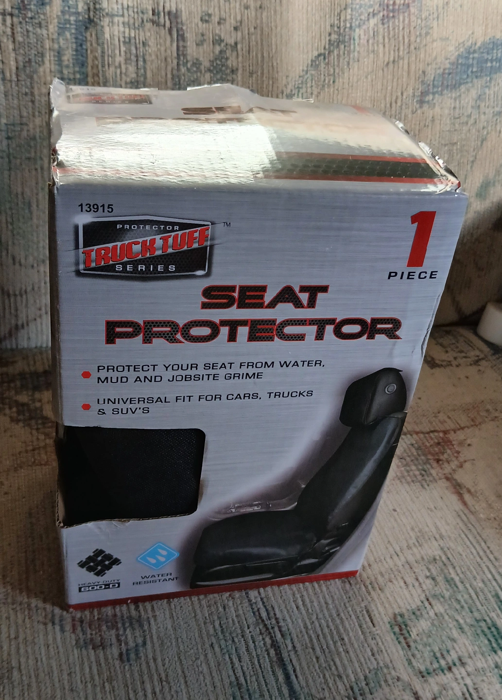 45Keep your car seats protected with this Truck Tuff seat protector! It's designed with heavy-duty 600-D material and is water-resistant, perfect for protecting your seat from water, mud, and jobsite grime. It has a universal fit for cars, trucks, and SUVs, and installs in minutes. Secure fit straps included