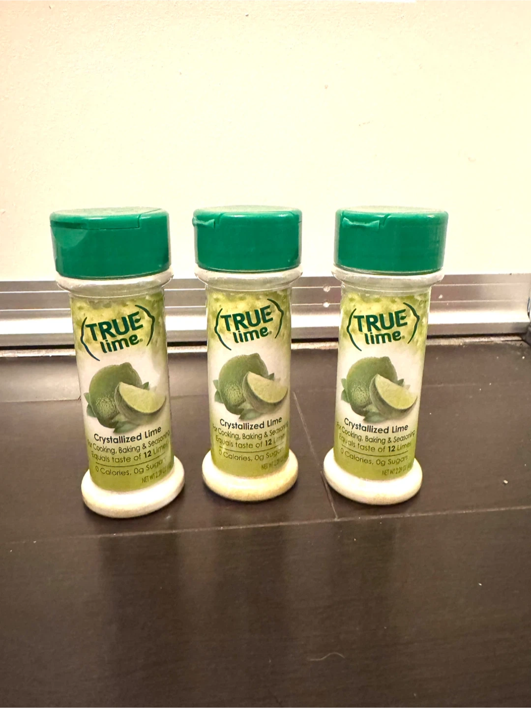 15I'm selling 3 bottles of True Lime Crystallized Lime. It's perfect for adding a zesty flavour to your meals! - Just a shake for fresh-squeezed taste - Great for sprinkling on seafood, meat, chicken, fruits, vegetables & salads - Can be used to flavor food instead of salt or replace lime juice in recipes Be healthy, be happy, be True