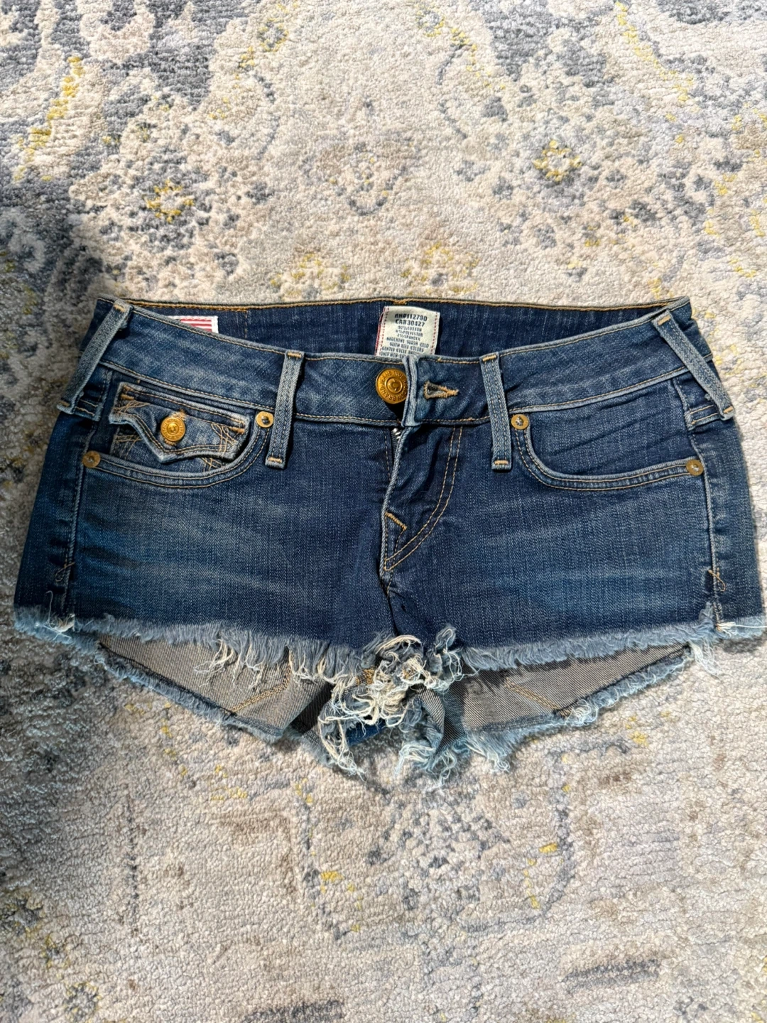 10These True Religion denim shorts are in great condition and ready for a new home! They feature the classic True Religion pocket design with gold button details. Perfect for a casual summer look!